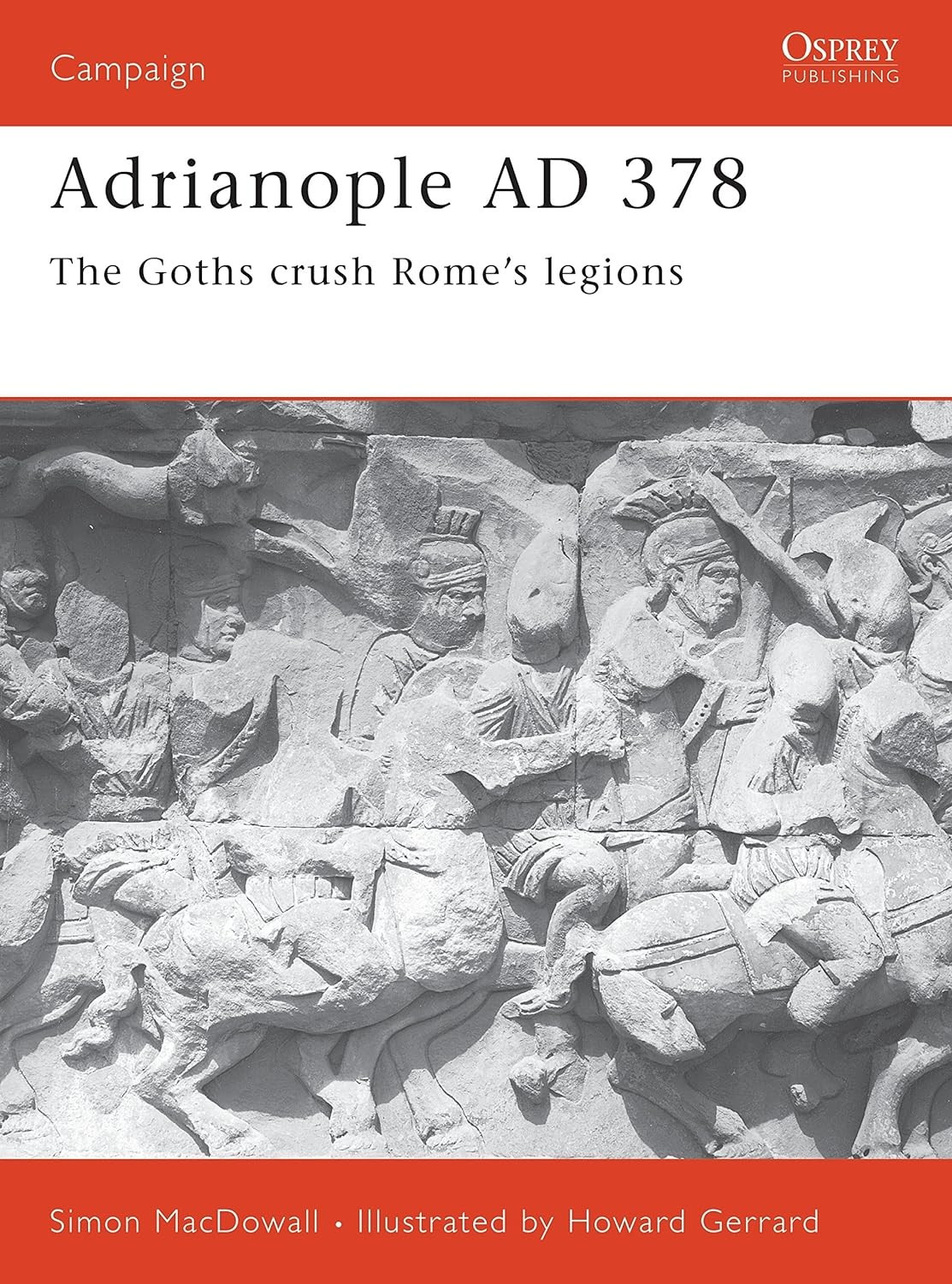 Opracowanie wydawnictwa Osprey dotyczące bitwy pod Adrianopolem (378 ne), stoczonej między buntownikami Gotów, dowodzonych przez Fritigern, a armią rzymską dowodzoną przez cesarza Walensa. "Nigdy, z wyjątkiem bitwy pod Kannami, nie zanotowano tak niszczycielskiej rzezi w naszych kronikach". W ten sposób rzymski historyk Ammianus Marcellinus opisał bitwę pod Adrianopolem, która była początkiem końca Cesarstwa Rzymskiego. Tak miażdżąca klęska Rzymian z ręki gockiej kawalerii dowiodła zarówno Cesarstwu, jak i samym Gotom, że migrujący barbarzyńcy są siłą, z którą należy się liczyć. Ta książka opowiada historię błędnych rzymskich planów i niespodziewanego ataku gockiej kawalerii i przedstawia najnowsze teorie dotyczące prawdziwego miejsca bitwy.