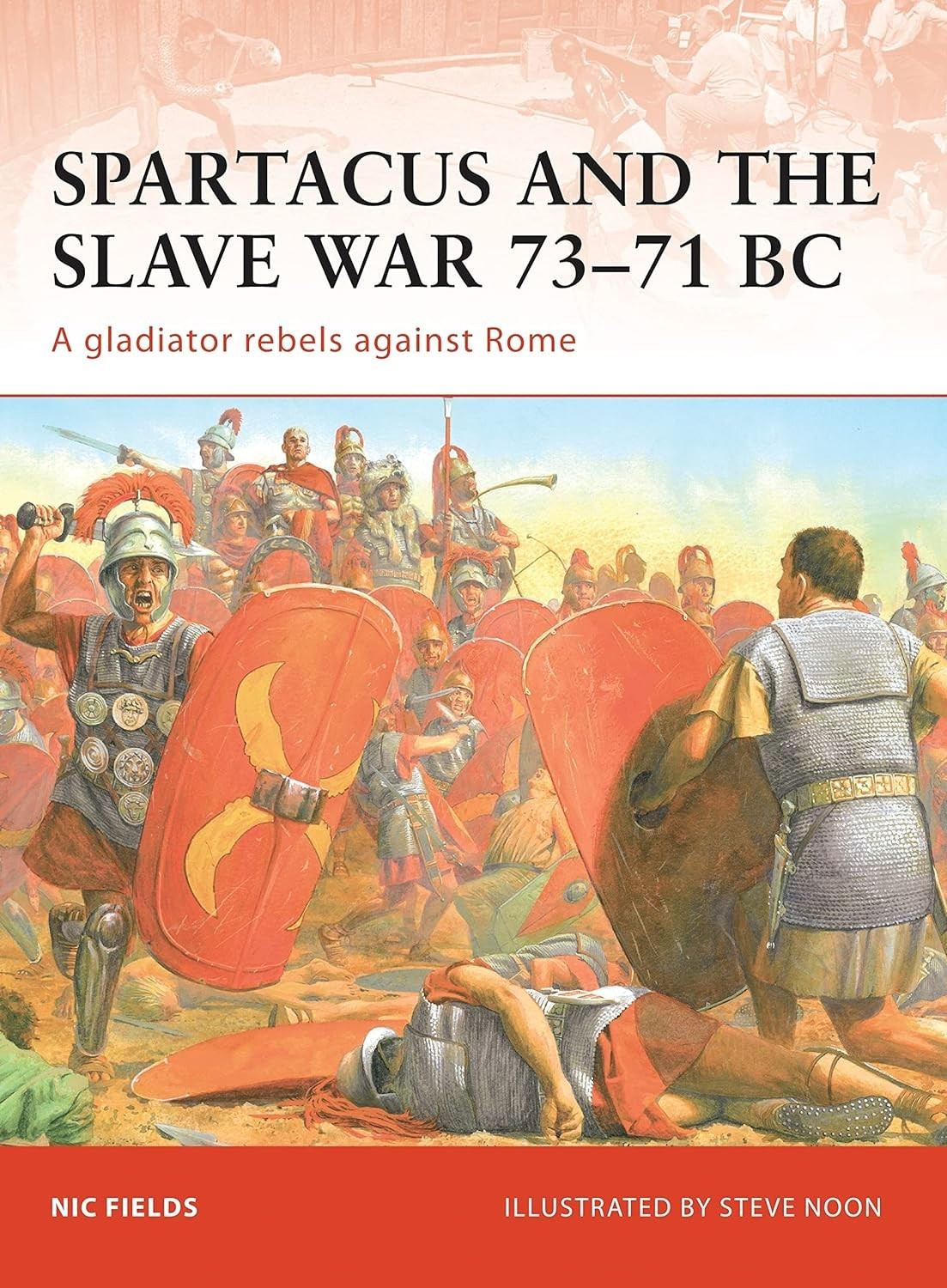 Ten tytuł wydawnictwa Osprey Campaign ożywia historię najsłynniejszego rzymskiego buntu, wojny niewolników (73-71 p.n.e.) i byłego gladiatora, który jej przewodził. W 73 roku p.n.e. tracki Spartakus wyrwał się ze szkoły gladiatorów w Kapui w Kampanii. Charyzmatyczny przywódca Spartakus utworzył armię zbiegłych niewolników i ludzi, którzy mieli niewiele do stracenia, i pokonał wojska rzymskie pod dowództwem pretora C. Klaudiusza Glabera. Po tym niewielkim zwycięstwie armia Spartakusa powiększyła się do 70 000 i szalała w całej Kampanii, atakując wiele miast i pokonując dwie armie konsularne. Aby bunt nie rozprzestrzenił się w Republice, przerażony rząd powierzył Licyniuszowi Krassusowi zadanie stłumienia powstania. Pierwsza próba Krassusa schwytania Spartakusa nie powiodła się, a senat rzymski wezwał Pompejusza na pomoc. Razem osaczyli Spartakusa i doprowadzili go do bitwy w pobliżu źródła rzeki Silarus. Podczas bitwy Spartakus został zabity, a jego armia pokonana. Krassus ukrzyżował 6000 więźniów jako przykład dla innych, którzy mogliby pomyśleć o buncie.
