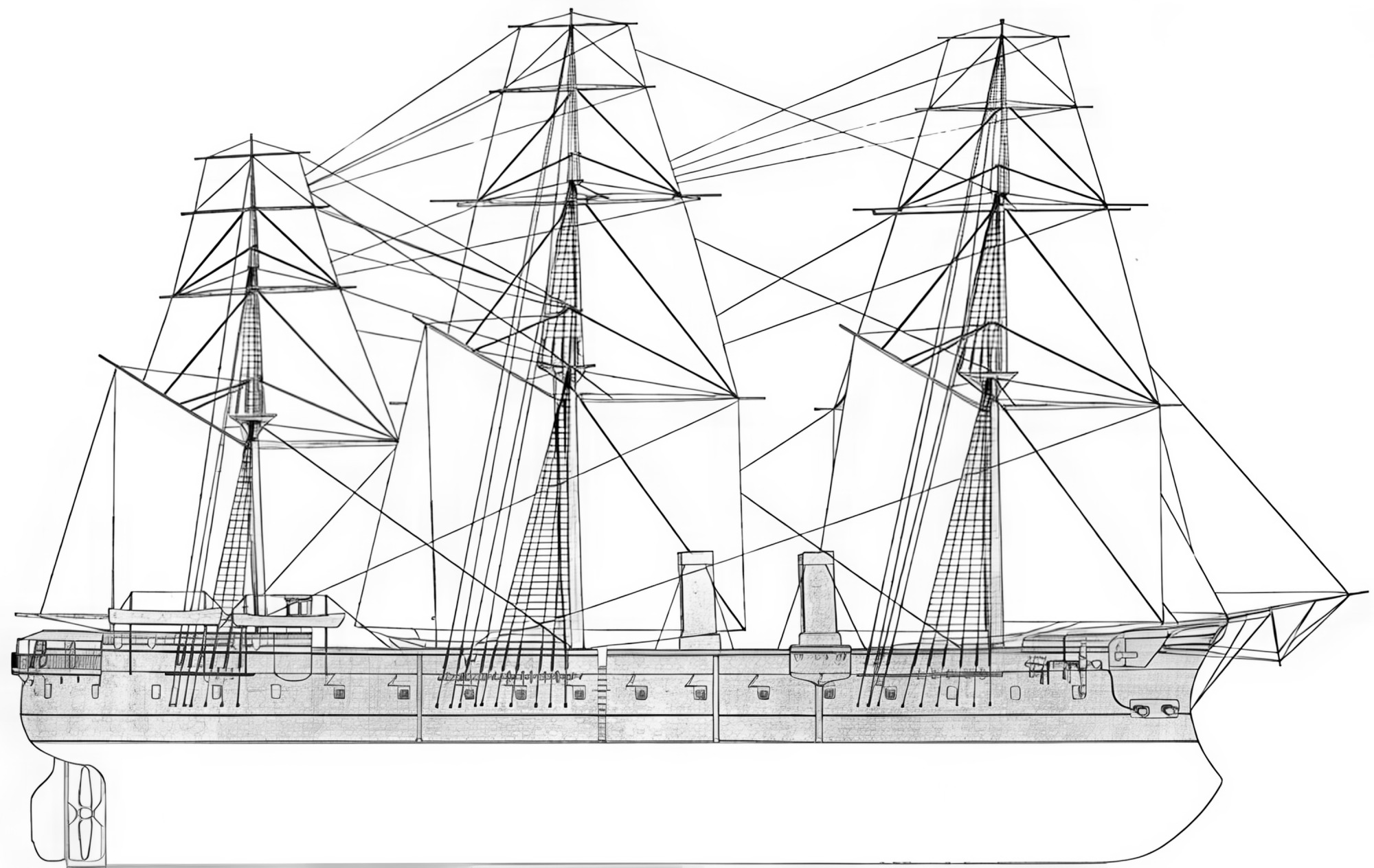 | Ożaglowanie | Pełnorejowe o powierzchni 2880 m² (31 000 sq ft), 3 maszty |