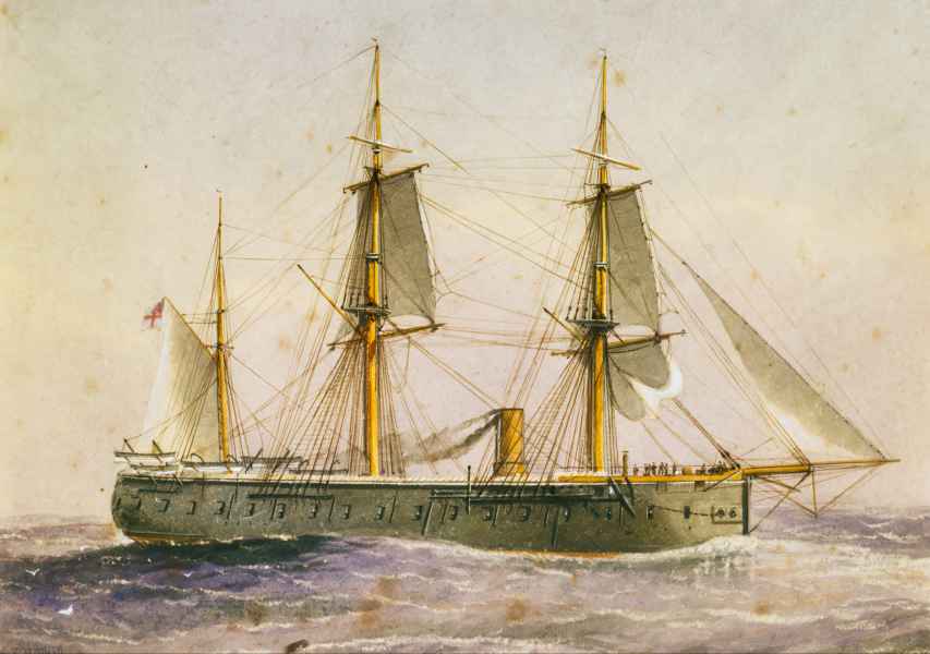 Z zasobów Imperial War Museums. Zdjęcie wykonane podczas pobytu okrętu w Neapolu, pomiędzy 1864 a 1867 r.