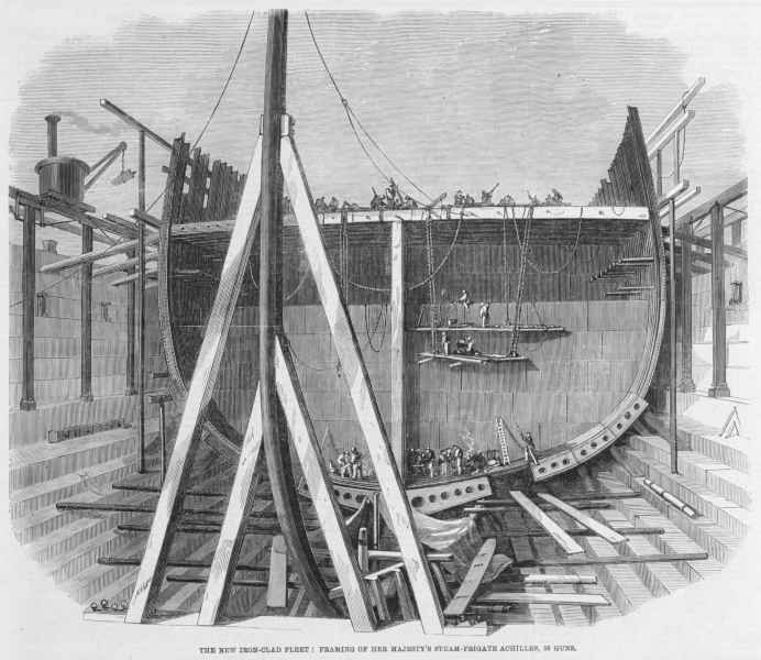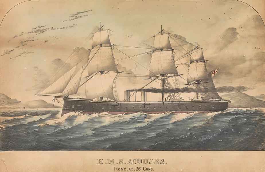 Fregatę pancerną HMS "ACHILLES" zaprojektował Isaac Watts. Okręt zbudowano w oparciu o zmodyfikowany projekt fregaty HMS "WARRIOR". Był wyposażony w podobne maszyny lecz był większy, miał mocniejsze uzbrojenie i zmodyfikowane, zwiększone opancerzenie. Był pierwszym okrętem o żelaznym kadłubie wybudowanym w Royal Dockyard oraz pierwszym (od XVII wieku) okrętem brytyjskiej marynarki wyposażonym w 4 maszty. |