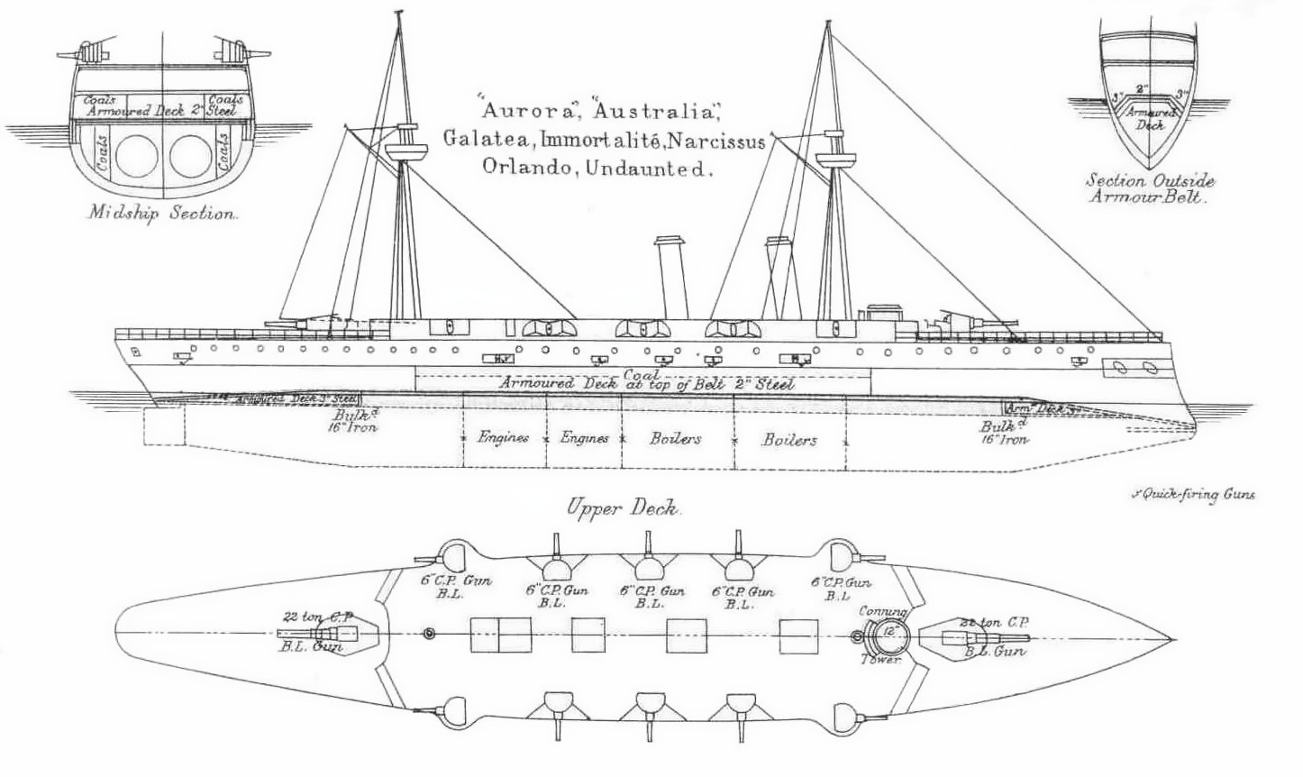 | AURORA | Pembroke DYd | 01.02.1886 | 28.10.1887 | ?.07.1889 | Sprzedany na złom 02.10.1907 r. |