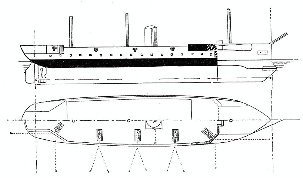 | 19.07.1877 | Pierwsze wcielenie okrętu do służby. Jednakże problemy z silnikami oraz błędy konstrukcyjne spowodowały iz okręt przebywał w doku aż do marca 1878 r. |