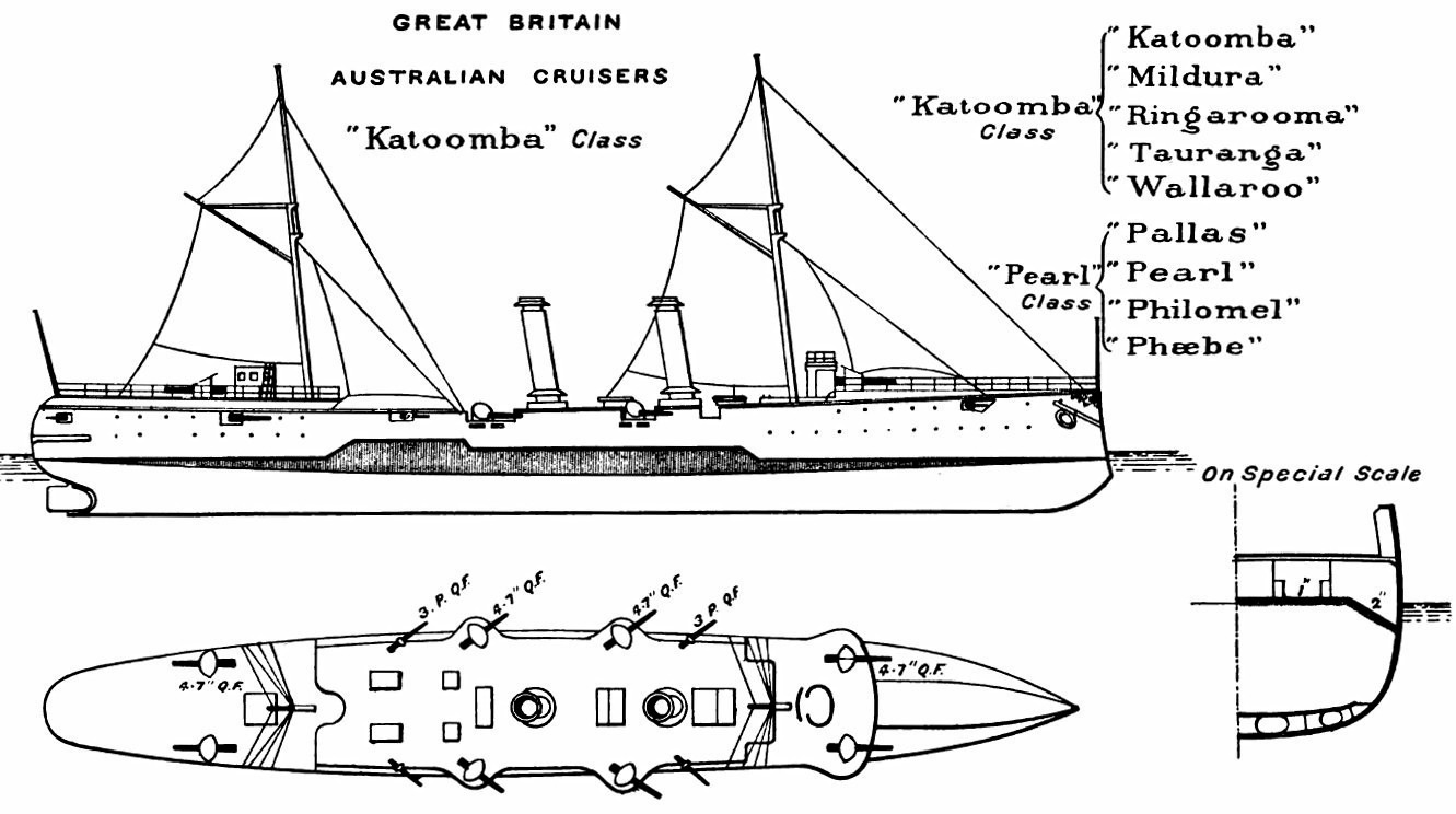 | KATOOMBA (ex. PANDORA) | Armstrong, Elswick | 15.08.1888 | 27.08.1889 | 24.03.1891 | Sprzedany w 1906 r. |