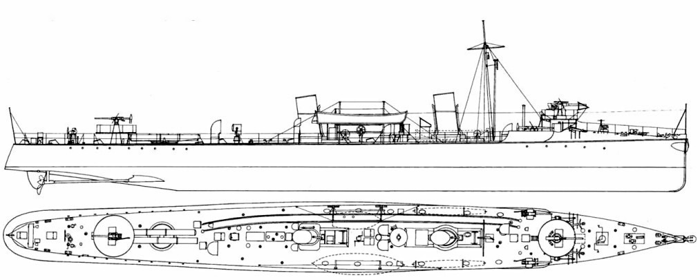 1 działo 76 mm (3 in) 12-funtowe (12 pdr) 12 cwt QF; 3 działa 57 mm (2,24 in) (6-funtowe (6 pdr) 8 cwt QF; 3 wyrzutnie torped 450 mm (17,72 in)