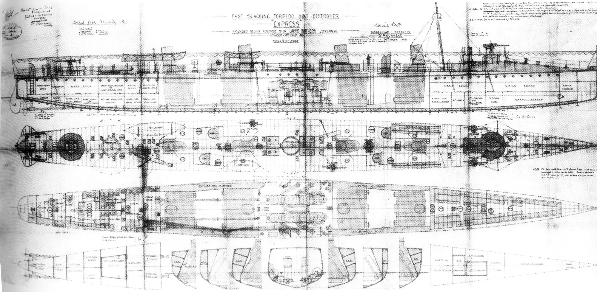 | 11.12.1897 | Wodowanie okrętu. Matką chrzestną okrętu została pani John Laird, należąca do rodziny rodziny założycielskiej stoczni Laird, a w wodowaniu uczestniczyli oficerowie z marynarki wojennej Argentyny, Włoch i Japonii oraz przedstawiciel ambasady rosyjskiej. W tym czasie "EXPRESS" był największym niszczycielem, jaki kiedykolwiek zbudowano. |