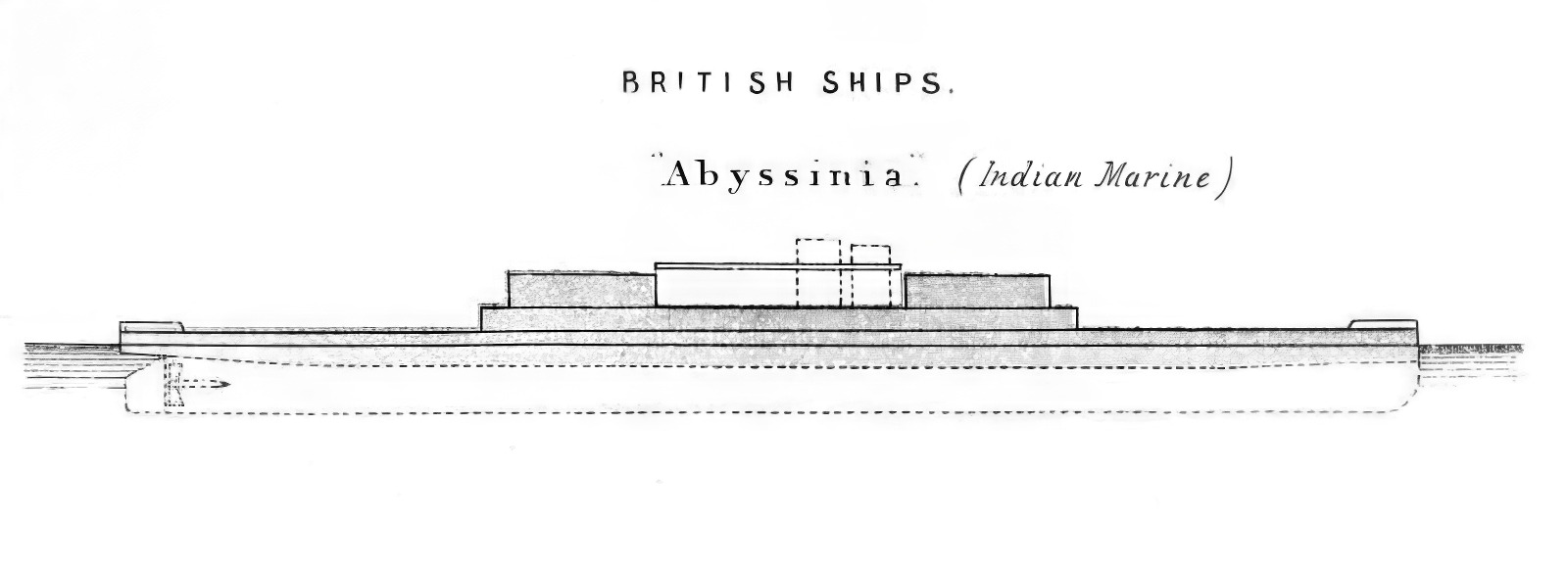 | 23.01.1871 | Okręt dociera o własnych siłach do Bombaju. W przeciwieństwie do HMS "MAGDALA", na HMS "ABYSSINIA" nie podwyższano burt na czas rejsu. Całą drogę przebył korzystając z silnika parowego. Okręt przebywał w Bombaju przez cały okres służby, wychodząc w morze jedynie na okresowe ćwiczenia. |