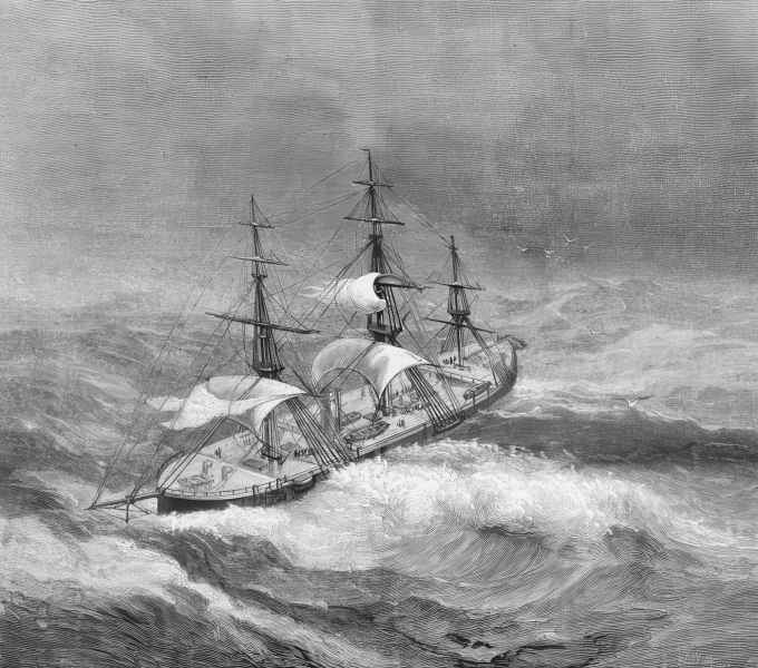 HMS "ROYAL ALFRED" w atlantyckim sztormie. Ilustracja do "The Graphic", 28 lutego 1874.