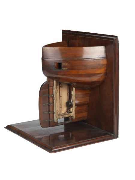 Model rufy HMS "ROYAL ALFRED" przedstawiający ster i koferdam nałożony na otwór na śrubę. Z zasobów Royal United Service Institution Collection w National Maritime Museum, Greenwich, Londyn.