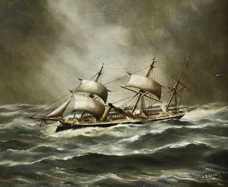 | Maszyny | 2-cylindrowa, pozioma maszyna parowa z powrotnymi korbowodami pojedynczego rozprężania firmy Maudslay, 6 kotłów typu kufrowego, 1 śruba |