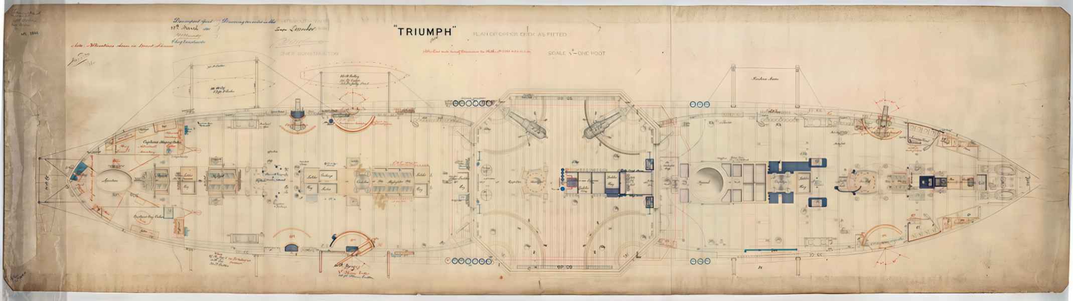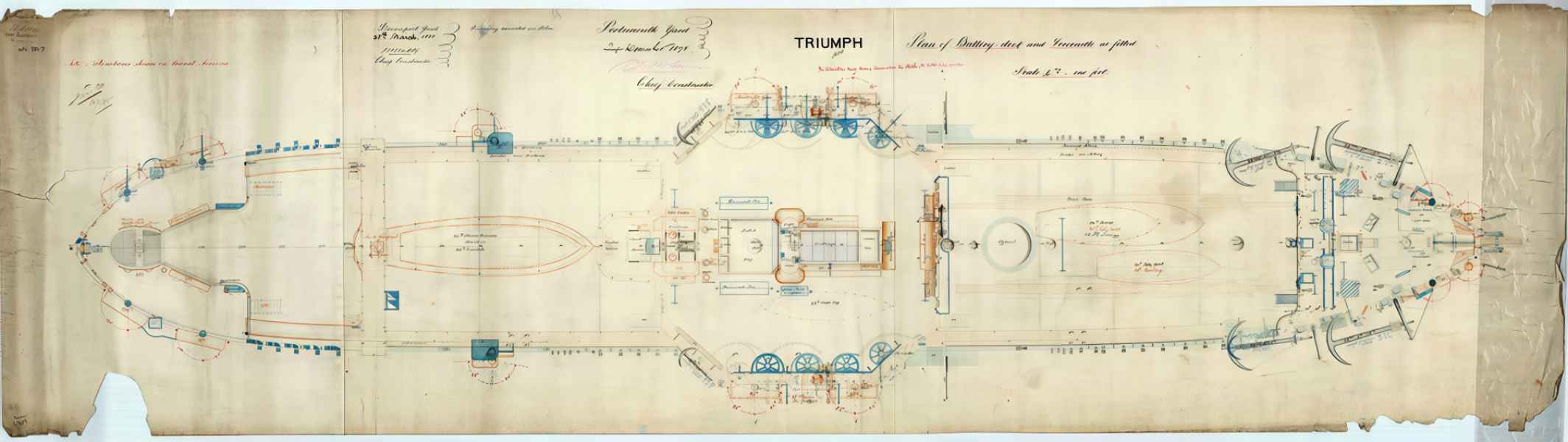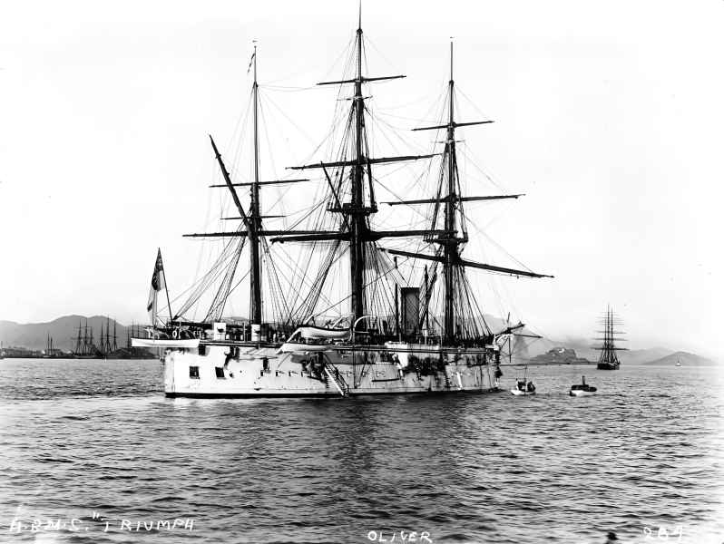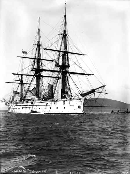 | Modernizacja w latach 1882/84 - "TRIUMPH" | 10 dział 229 mm (9 in) (12-ton) MLR; 4 działa 127 mm (5 in) RBL; 6 dział 20-funtowych (20 pdr) RBL (salutacyjne); 8 dział 6-funtowych (6 pdr) QF; 8 dział 3-funtowych (3 pdr) QF; 4 wyrzutnie torped 356 mm (14 in) |