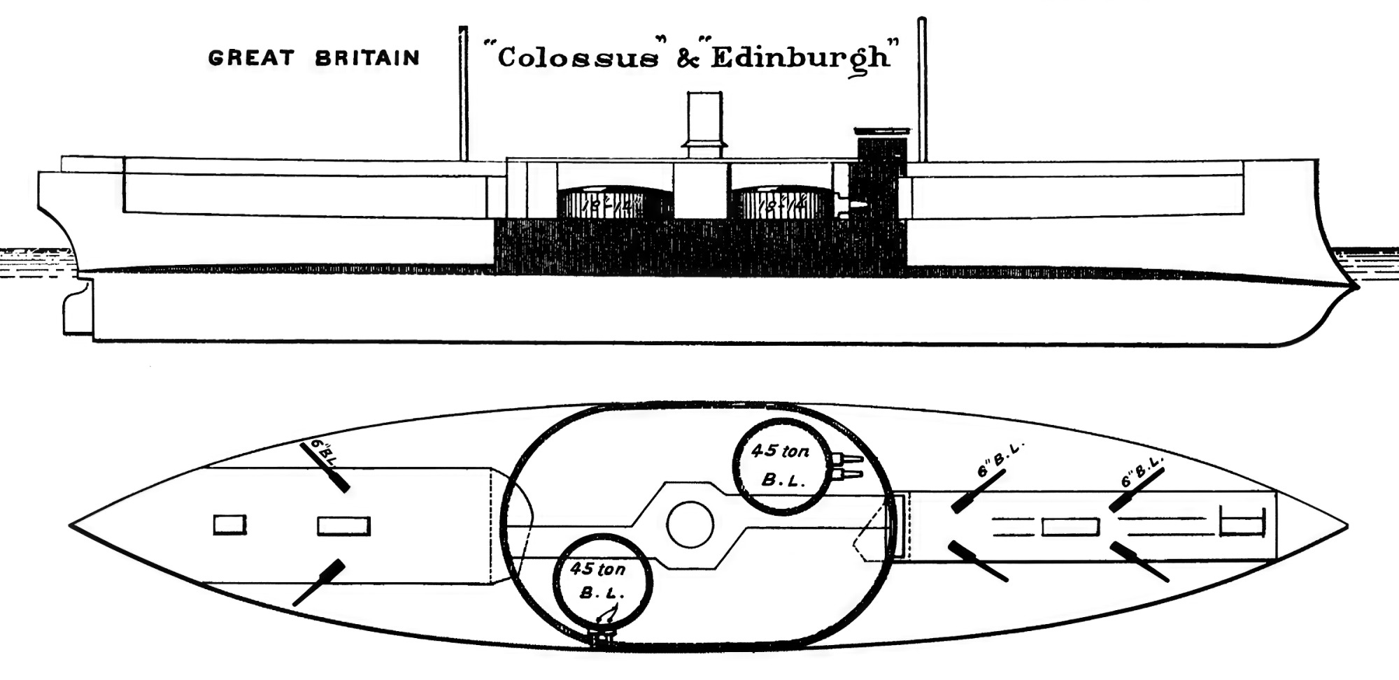 COLOSSUS | Portsmouth DYd | 06.06.1879 | 21.03.1882 | 31.10.1886 | Sprzedany na złom w 1908 r. |