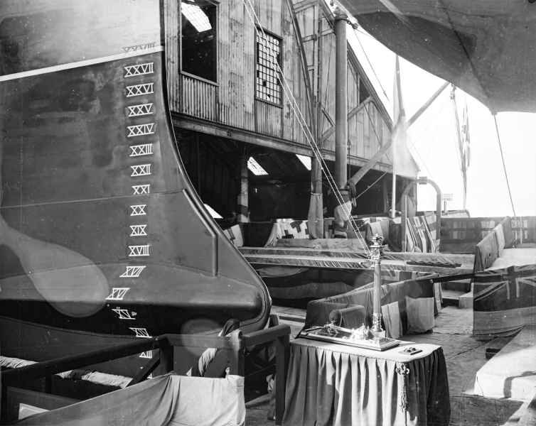 11.07.1894 | Para królewska (Księżna i Książę Walii) podczas wizyty w Carnavon została przywitana oddziałem Marines z HMS "COLOSSUS", zaś sam okręt w gali banderowej oddał salut na cześć dostojnych gości. |