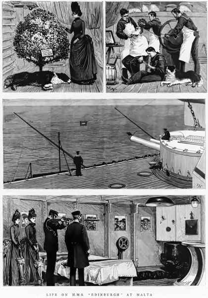 01.12.1887 - 20.03.1888 | Okręt przebywał na Malcie. W czasie pobytu w porcie odbył się sąd polowy nad jednym z marynarzy z HMS "EDINBURGH", którym był inżynier William Tazewell, oskarżony o zachowanie niegodne oficera, uznany winnym i zwolniony ze służby. Pożyczał pieniądze od innych oficerów i podoficerów z pancernika i nie był stanie spłacić długu. |