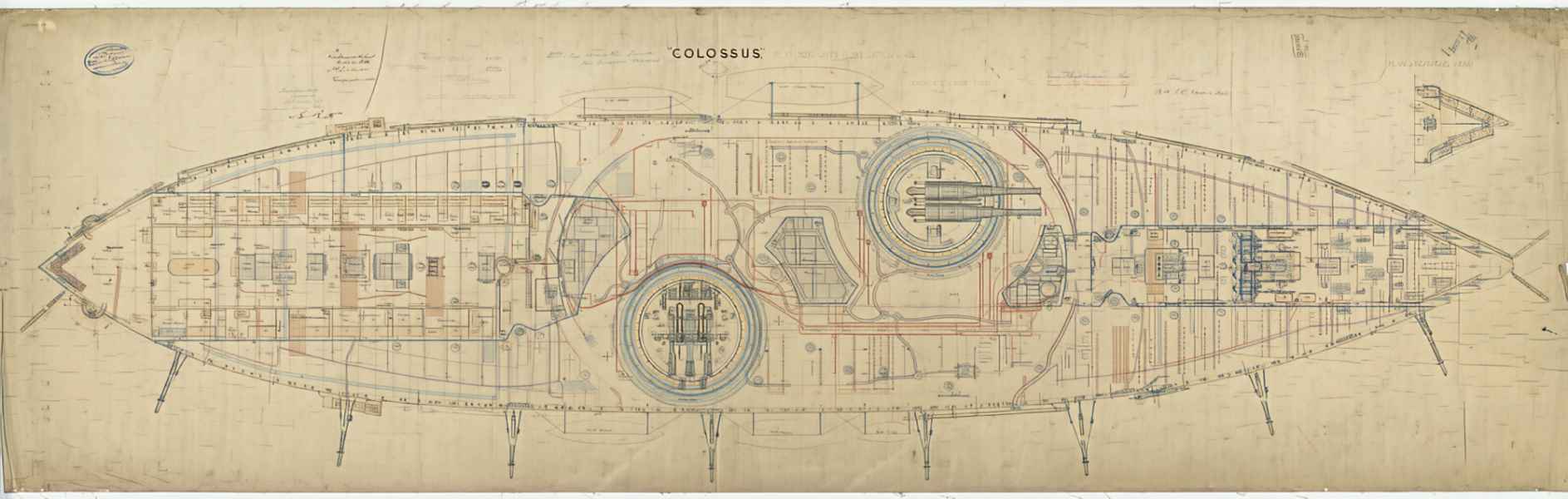 Taki okręt byłby ogromnym skokiem jakościowym pod względem właściwości i prędkości poruszania się w stosunku do poprzednich pancerników sięgających przynajmniej do końca lat 60. XIX wieku. Jednakże w związku z tym, że nie udało się przeforsować w Admiralicji takich warunków brzegowych, do końca czerwca D.N.C. zdecydował, że nowy okręt będzie miał "taką samą długość jak "SULTAN", "ALEXANDRA", "DREADNOUGHT" oraz "INFLEXIBLE" [czyli 320 stóp]; znacznie większą szerokość niż trzy pierwsze, ale mniejszą niż "INFLEXIBLE", znacznie mniejszą moc silników niż każdy z nich, ale zostanie zaprojektowany do osiągnięcia prędkości 14 węzłów, czyli jednego węzła szybciej niż typ "AGAMEMNON". Sporządzenie szczegółów tego projektu zostało opóźnione ze względu na korespondencję z Williamem Armstrongiem dotyczącą montażu nowych długich ładowanych odtylcowo dział zamiast dział z Arsenału w Woolwich w celu uzyskania "50% większej siły penetracji". Proces ten był tak skomplikowany, że Departament Konstrukcyjny ostatecznie przychylił się do kontynuowania prac projektowych, zakładając jednocześnie zaplanowanie możliwości wprowadzenia na pokłady okrętów nowych dział odtylcowych w przyszłości. Budowa kadłuba została przystosowana do użycia dział ładowanych odprzodowo, jak w dotychczasowych konstrukcjach, jednak w porównaniu do marynarek europejskich zaczynało być to już anachronizmem gdyż działa ładowane odtylcowo były stosowane w Europie już od jakiegoś czasu. W tamtych czasach za projektowanie okrętów była odpowiedzialna Rada Admiralicji, jednak za projekty, wykonanie i dostarczanie dział dla okrętów było odpowiedzialne Ministerstwo Wojny. W 1897 r., kiedy typu "COLOSSUS" była w fazie projektowania, 100-tonowe działa ładowane odprzodowo były właśnie testowane w Królewskim Arsenale w Woolwich, natomiast działa 80-tonowe dla typu "INFLEXIBLE" były już prawie gotowe. Admiralicja pod wpływem profesjonalnych opinii oficerów oraz doniesień z innych krajów europejskich zdecydowała się wysłać grupę oficerów i inżynierów do fabryki Krupp'a w Essen. W wyniku ich raportu, Arsenał Woolwich podjął produkcję 12-calowych armat ładowanych odtylcowo, z mechanizmem zamka produkowanym w Elswick, jednakże konkurencja ze strony Williama Armstronga i wynikające z niej dyskusje powodowały dodatkowe opóźnienia.