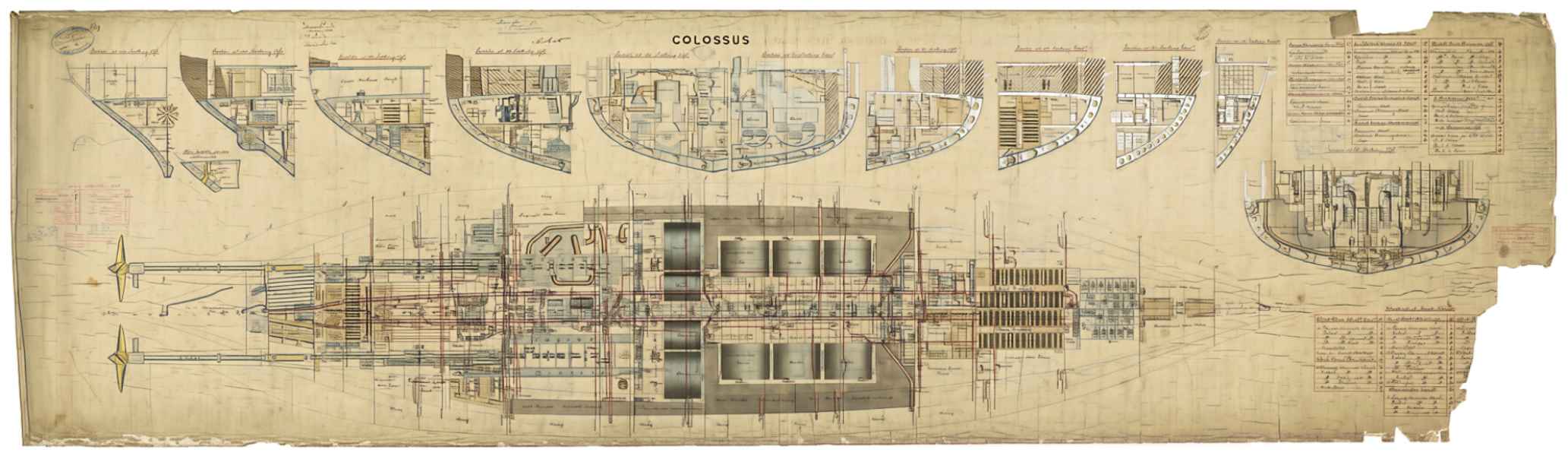 Barnaby przeprowadził obszerne porównanie nowego projektu, najpierw z pancernikiem "SULTAN", a następnie z pancernikiem "DEVASTATION". Warto podsumować to porównanie, aby pokazać, jak szybko technologia posunęła się naprzód w ciągu dziesięciu lat od momentu położenia stępki dla pierwszego z tych dwóch pancerników. "Wyporność... jest nieco mniejsza niż w przypadku "SULTAN", pisał Barnaby do Admiralicji, "a moc jest mniejsza o 2600 ihp, ale szukamy tej samej prędkości... wydajność węglowa przy prędkości 13 węzłów jest o 120% większa... pancerz o dwukrotnie większej grubości; i działa o dwukrotnie większej mocy, strzelające salwą burtową o wadze większej o 60% do 70%", i wszystko to przy nieco ponad połowie załogi, ponieważ oczywiście "COLOSSUS" nie posiadał żagli. Ponadto, "jeżeli weźmiemy pod uwagę typ "AGAMEMNON", pancerz nowych jednostek byłby prawie dwukrotnie grubszy, lub mógłby zostać nieznacznie poświęcony, aby zwiększyć uzbrojenie o cztery dodatkowe działa 6-calowe". W porównaniu z "DEVASTATION", który był standardem, na podstawie którego efektywność bojowa była oceniana przez Komitet Admiralicji ds. Projektów i większość późniejszych komentatorów, Barnaby wyliczył zalety nowej konstrukcji: "COLOSSUS" byłby nieco lżejszy, ale o 40 stóp dłuższy, prawie 6 stóp szerszy, o 9 do 12 cali mniejszym zanurzeniu, z o ¼ węzła większą szacowaną prędkością, o 10% większą wydajnością węglowa... posiadałby pancerz kadłuba o 50% większej grubości i działa ważące 38 ton zamiast 35 ton". Ponadto, dzięki ustawieniu wież en-echelon, "ogień w kierunku na wprost i w kierunku rufy oraz zasięg poziomy dział jest znacznie większy". Jeśli te ulepszenia nie byłyby wystarczające, aby zdobyć zgodę Board, nowy projekt obejmował również "znacznie lepsze warunki zakwaterowania w pomieszczeniach socjalnych; i łodzie oraz kotwice są przenoszone wyżej nad wodą". W obliczu tak imponującego podsumowania, zgoda Admiralicji nie była niczym zaskakującym.