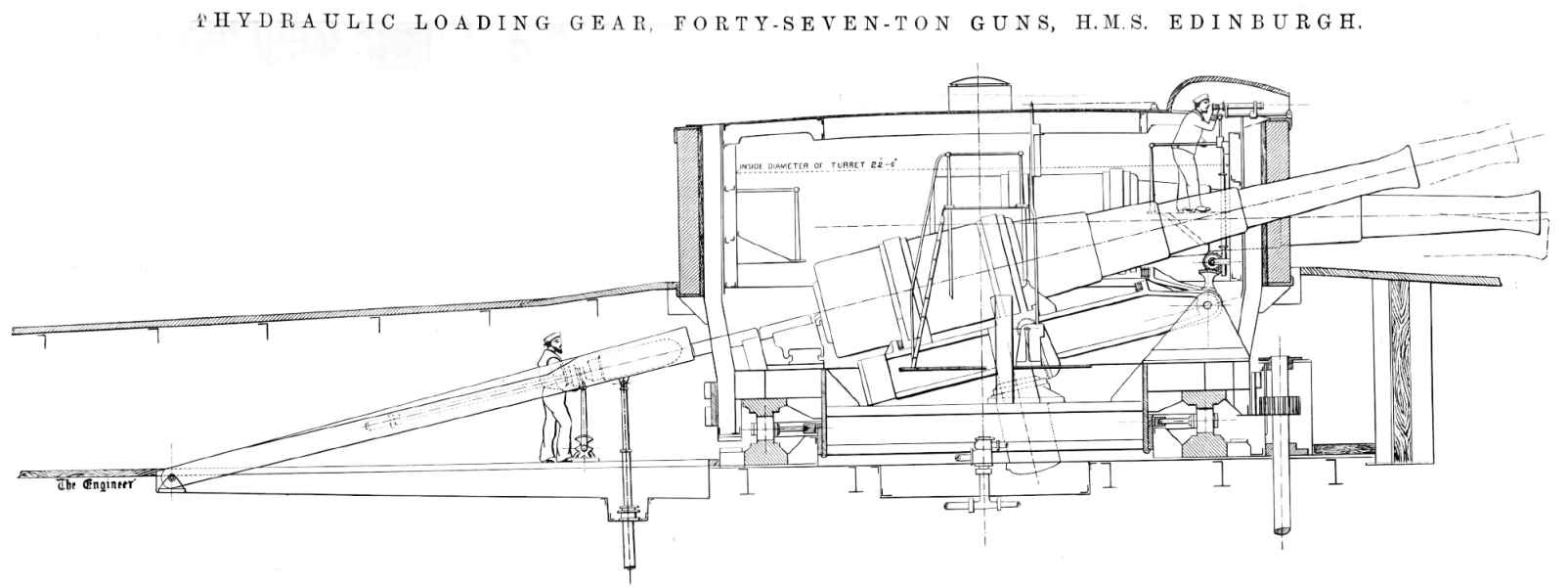 Maszyny | Dwie 3-cylindrowe, pionowe maszyny parowe o podwieszanych cylindrach podwójnego rozprężania firmy Maudslay (HMS "EDINBURGH": firmy Humphreys ), 10 kotłów owalnych (8 główne i 2 pomocnicze), 2 śruby |