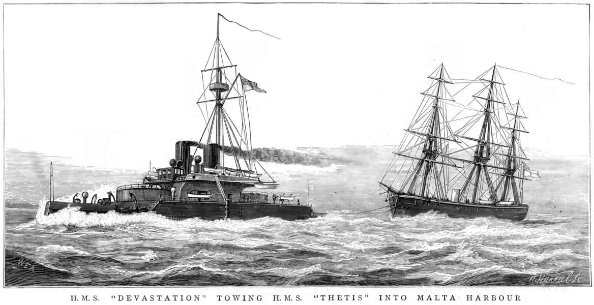 | 06.1875 | W tym okresie okręt przebywał w Wenecji. 25.06.1875 wraz z HMS "HERCULES" i HMS "PALLAS" okręt wyruszył w rejs na Maltę, zawijając po drodze do Triestu (07.07), Ankony (17.07 - 22.07) i Syrakuz. Na miejsce okręty dotarły 29.07.1875 r. |