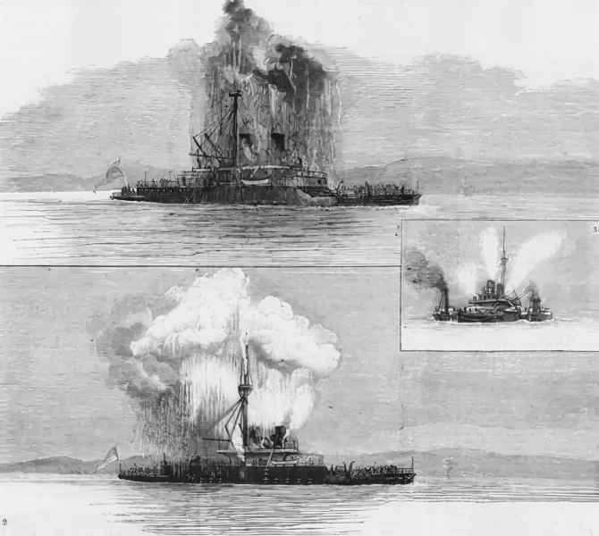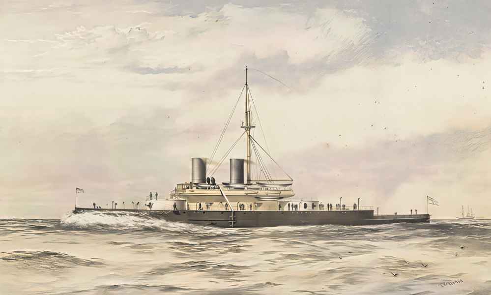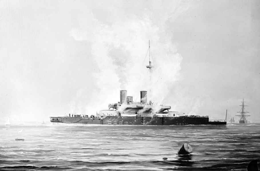 | 02.01.1879 | W trakcie ćwiczeń na Morzu Marmara nastąpiła kolejna katastrofa. Jedno z dział 12-calowych eksplodowało po omyłkowym, ponownym załadowaniu po niewypale. W wyniku eksplozji zginęło 11 ludzi a 35 zostało rannych. Podobnie jak w przypadku wcześniejszej katastrofy kotła, ten wypadek również stał się przyczyną zmian w planowanym uzbrojeniu przyszłych okrętów, w którym coraz większą rolę zaczęły odgrywać działa ładowane odtylcowo. |