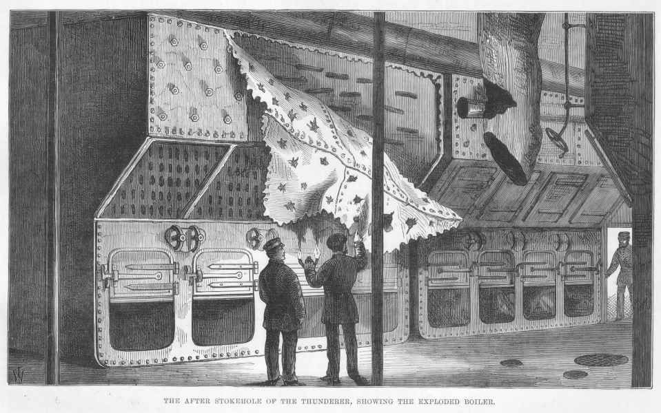 | 14.07.1876 | Podczas prób obciążeniowych w trakcie rejsu z Portsmouth do zatoki Stokes nastąpiła katastrofa. Jeden z kotłów eksplodował zabijając łącznie 45 ludzi (w tym kapitana okrętu, który niefortunnie znalazł się wtedy w pobliżu wybuchu) oraz raniąc 30 kolejnych. Zdarzenie to przyspieszyło prace nad wykorzystaniem innych modeli kotłów w Royal Navy. Przyczyną katastrofy był skorodowany i uszkodzony zawór bezpieczeństwa. |