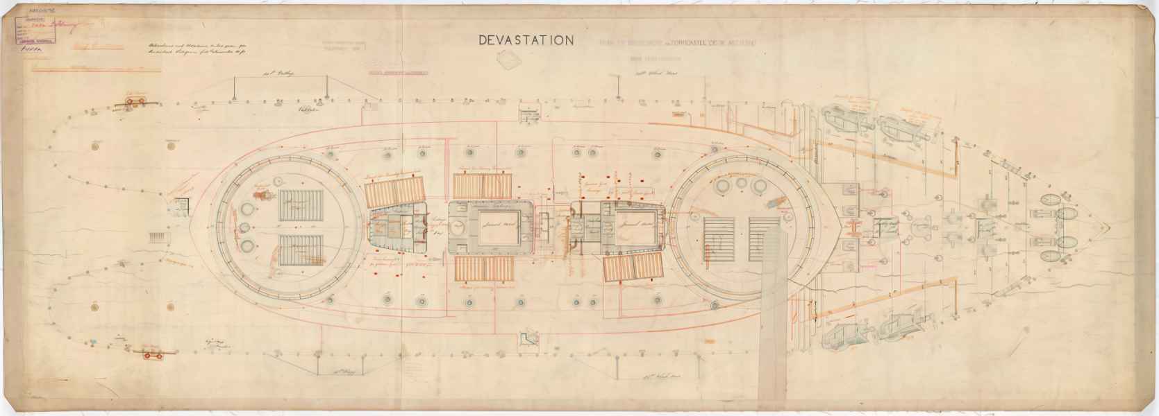 | Początkowe - HMS "DEVASTATION" | 4 działa 305 mm (12 in) MLR (35-ton) (2x2) |