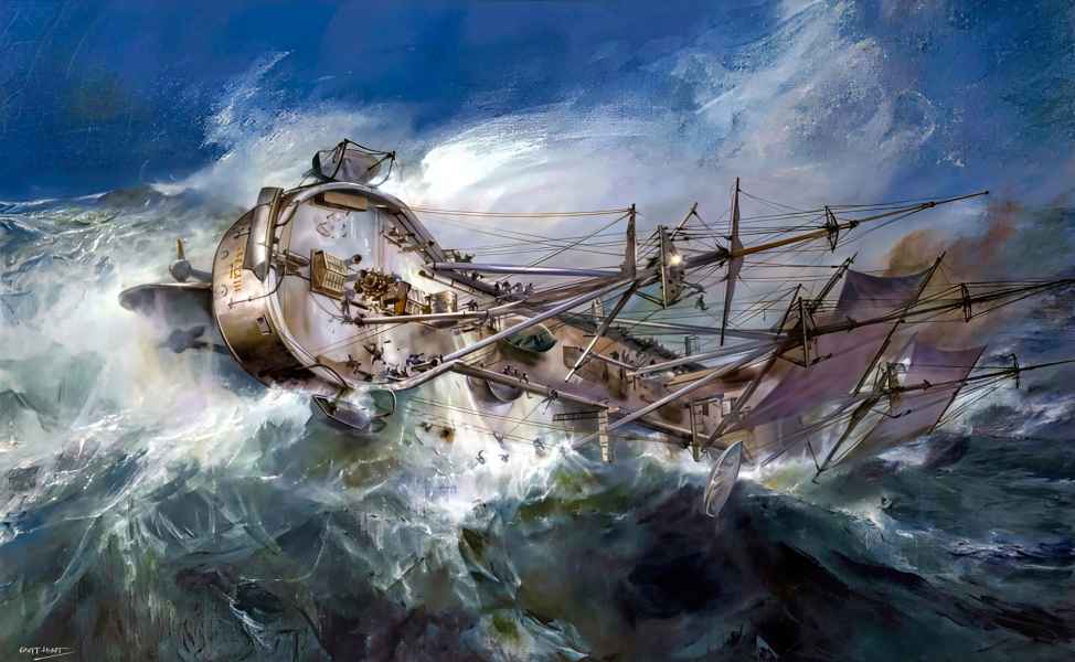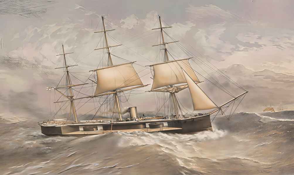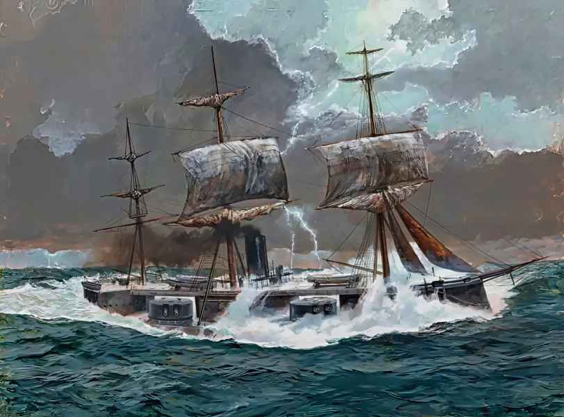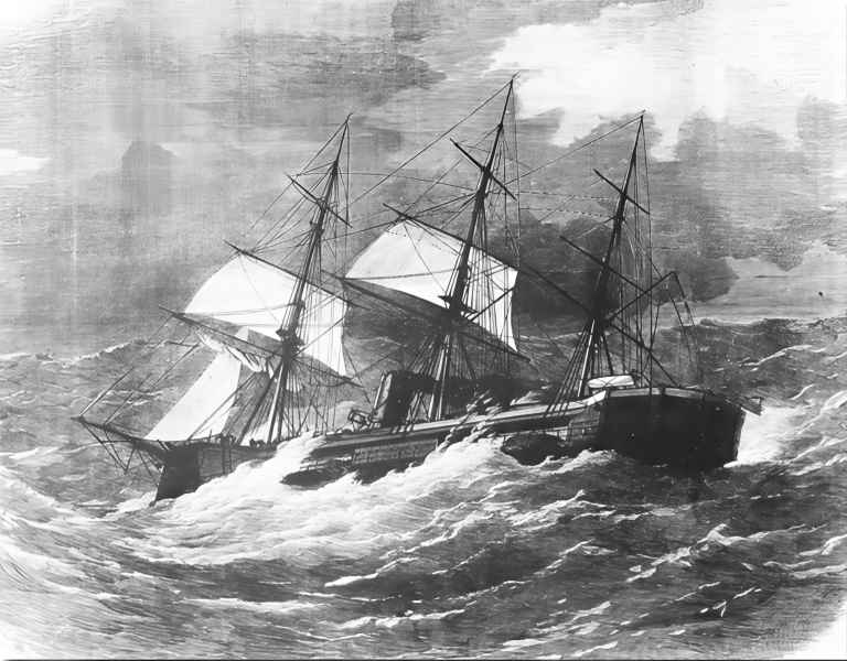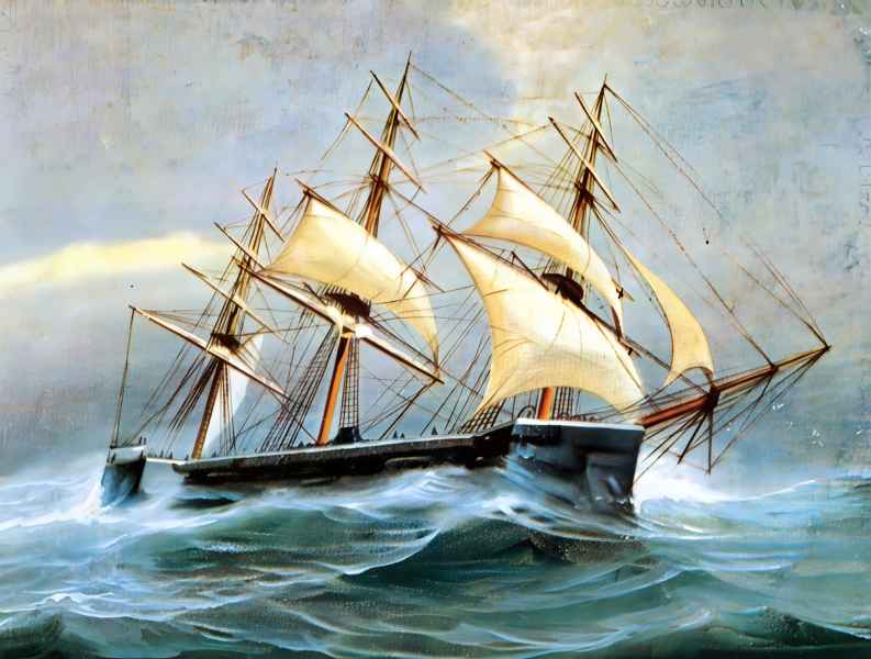 | 07.09.1870 | W godzinach popołudniowych 06.09.1870 r. HMS "CAPTAIN" wraz z 11 okrętami Channel Fleet żeglował w okolicach przylądka Finisterre. Okręt rozwijał 9,5 węzła płynąc pod żaglami przy wietrze o sile 6, stopniowo zwiększającej się przez cały dzień. Głównodowodzący zszedł na pokład aby ocenić efektywność ożaglowania, podczas jego obecności prędkość oscylowała w granicach 11 - 13 węzłów. Wraz z nadejściem nocy siła wiatru wzmogła się i fale zaczęły zalewać pokład. Podjęto decyzję o zdjęciu części ożaglowania i ustawienia się dziobem ostrzej do wiatru. Wraz z upływem czasu po raz kolejny zdecydowano o redukcji rozwiniętych żagli w związku z ciągłym pogarszaniem się pogody.
