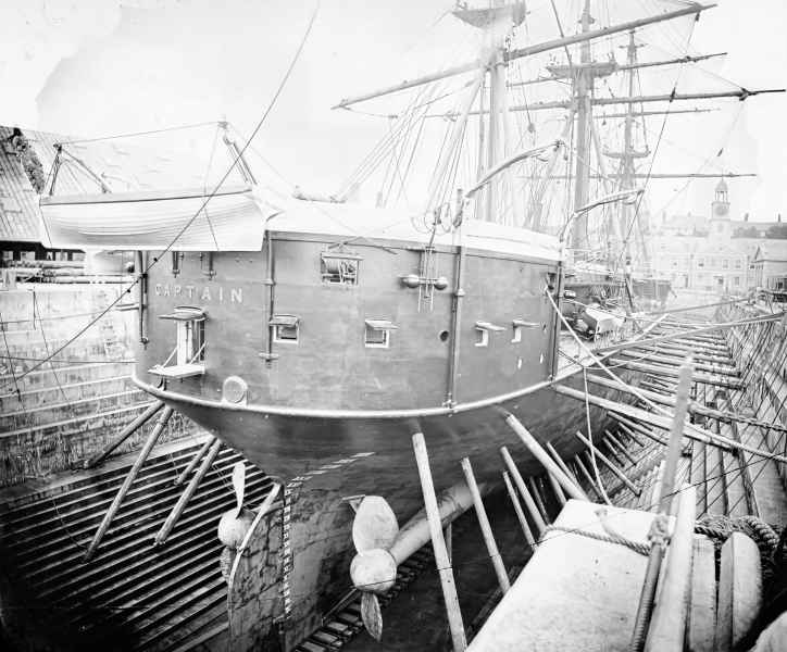 Historia HMS "CAPTAIN" sięga Wojny Krymskiej w 1855 r. i doświadczeń jakie wyniósł z niej brytyjski oficer, Captain Cowper Phipps Coles. W trakcie tej wojny Coles, wraz z grupą marynarzy skonstruował platformę, na której umieścił obrotową wieżę z działami. platforma zamontowana na małej łodzi "LADY NANCY', ostrzeliwała rosyjskie miasto Taganrogu nad Morzem Czarnym. "LADY NANCY" okazała się "wielkim sukcesem" i Coles opatentował wieżyczkę obrotową po wojnie. Admiralicja zamówiła prototyp w 1859 r. i nakazała zamontować wieżę na pływającej baterii HMS "TRUSTY". W 1861 r. obyły się testy i badania.