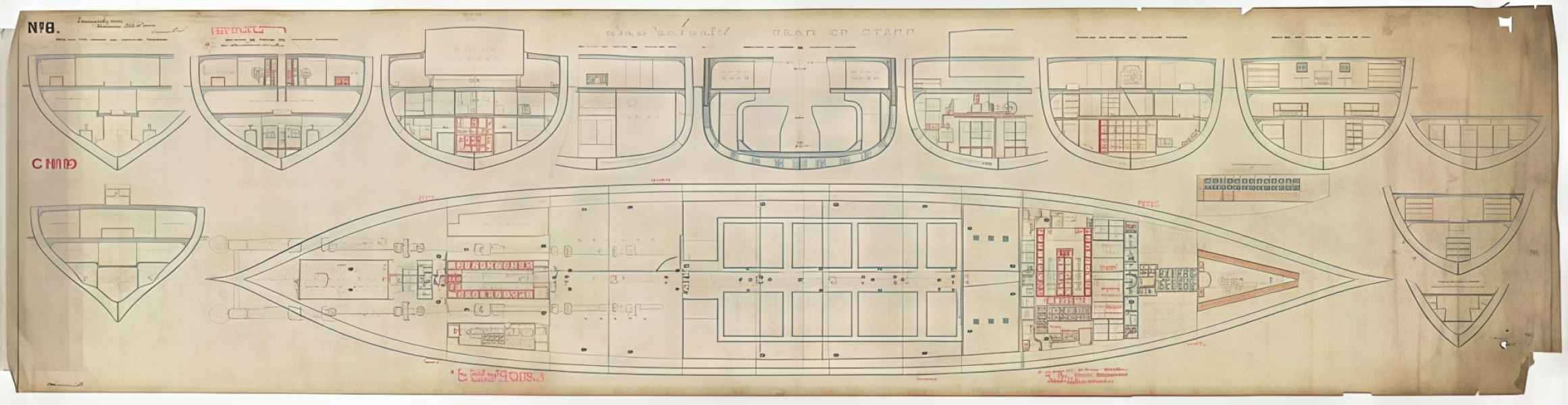 | Maszyny | Dwie 2-cylindrowe, poziome maszyny parowe z powrotnymi korbowodami pojedynczego rozprężania, 8 kotłów typu kufrowego, 2 śruby |