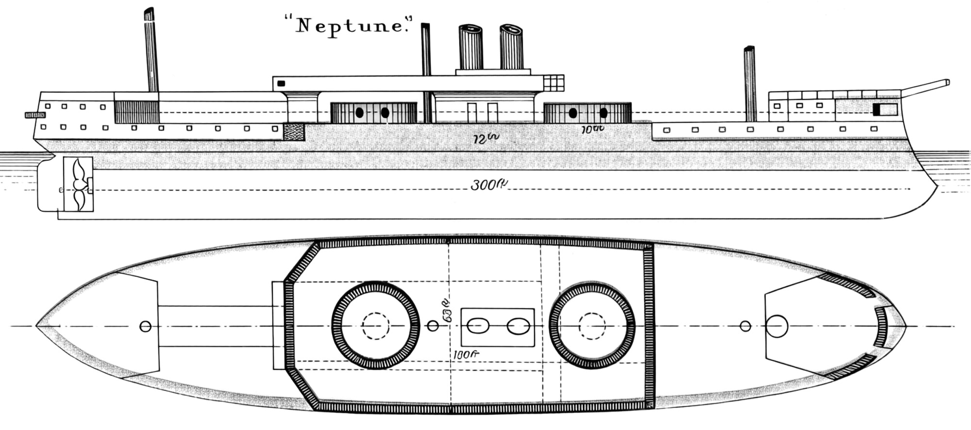 HMS "NEPTUNE" był masztowym pancernikiem wieżowym wzorowanym na HMS "MONARCH", zaprojektowanym przez Edwarda Reed'a. Pierwotnie przeznaczony dla floty Brazylii został zakupiony przez Royal Navy w obliczu możliwej wojny z Rosją.