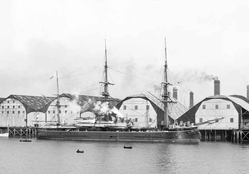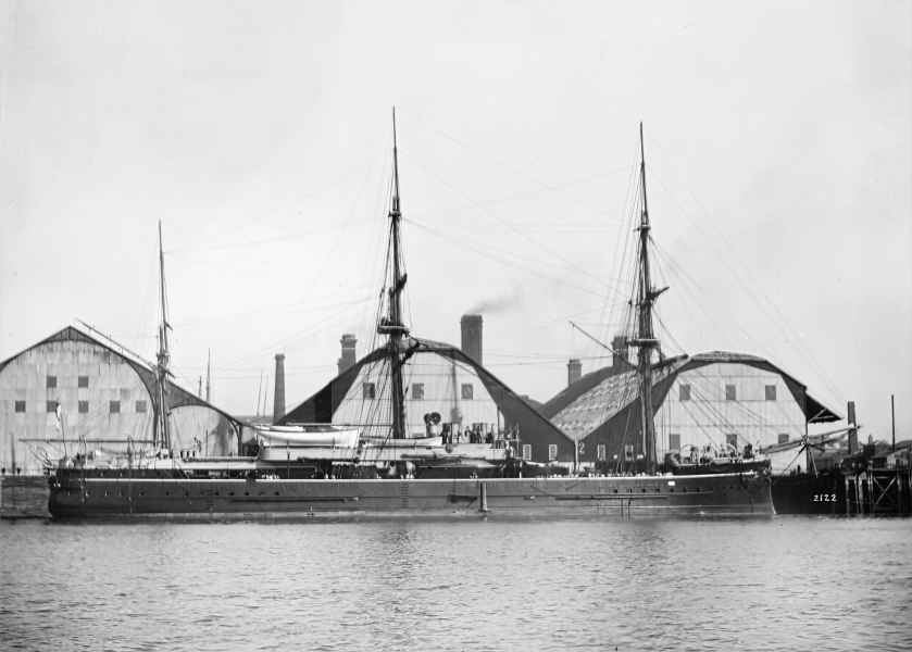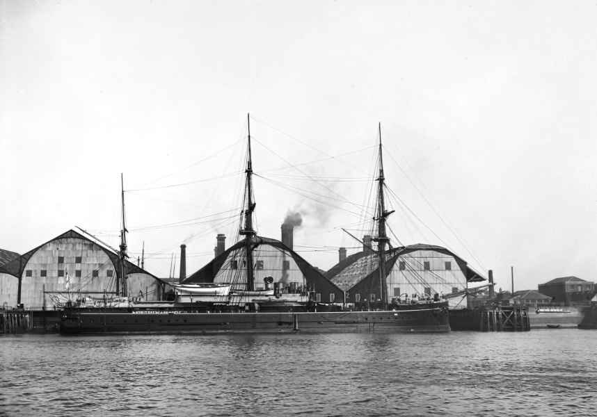 Wodowanie. Po wodowaniu okrętu został on odholowany do stoczni Samuda w Poplar w celu montażu wyposażenia i uzbrojenia.