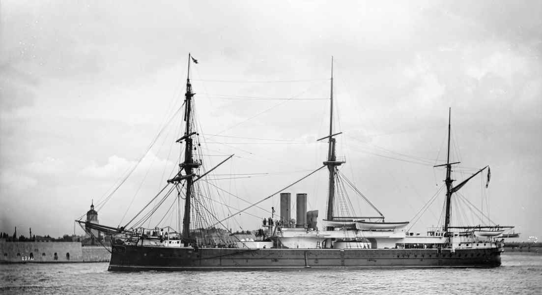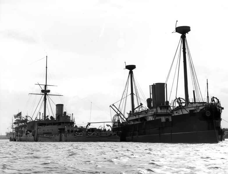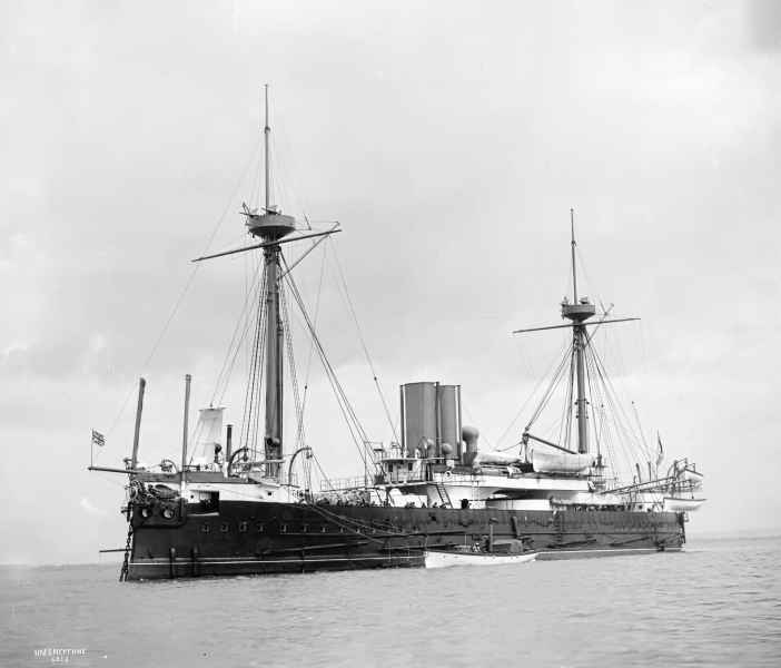 Zdjęcie z 1903 r. przedstawiające okręt podczas niegroźnej kolizji z HMS "HERO".