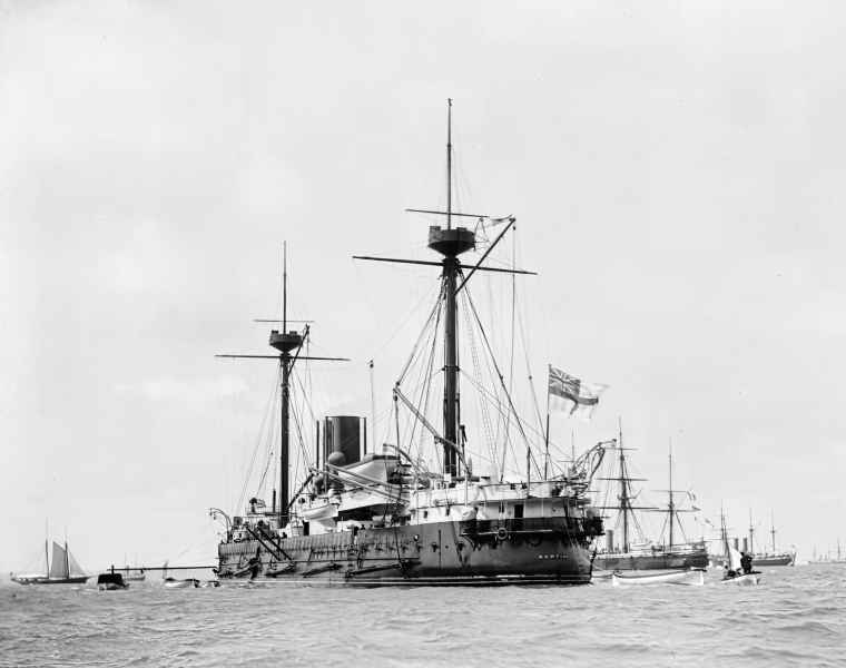 W trakcie drogi powrotnej do Holyhead okręt uległ kolizji ze szkunerem "LUNESDALE" nieopodal St Annes Head. Jeden marynarz z pancernika zginął przygnieciony zwalonym masztem ze szkunera, który spadł na pokład pancernika. HMS "NEPTUNE" wziął uszkodzony szkuner na hol i zaciągnął go do Milford. Naprawy na pancerniku zostały dokonane w Pembroke Dockyard.