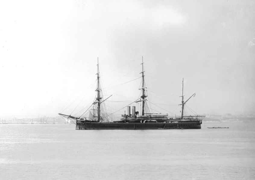 Uzbrojenie składało się z 4 dział 305 mm (12 in) MLR umieszczonych po dwa w wieżach działowych, 2 dział 229 mm (9 in) MLR, 6 dział 20-funtowych (20 pdr) RBL oraz 2 wyrzutni torped 356 mm (14 in). Dwa działa 229 mm były umieszczone na dziobie, na pokładzie górnym ochraniane przez 152 mm (6 in) pancerz. Wieże działowe zawierające po dwa działa 305 mm (12 in) MLR były umieszczone po obu stronach komina. Były ochraniane przez pancerz o grubości 330 mm (13 in) od frontu i 279 mm (11 in) na bokach.