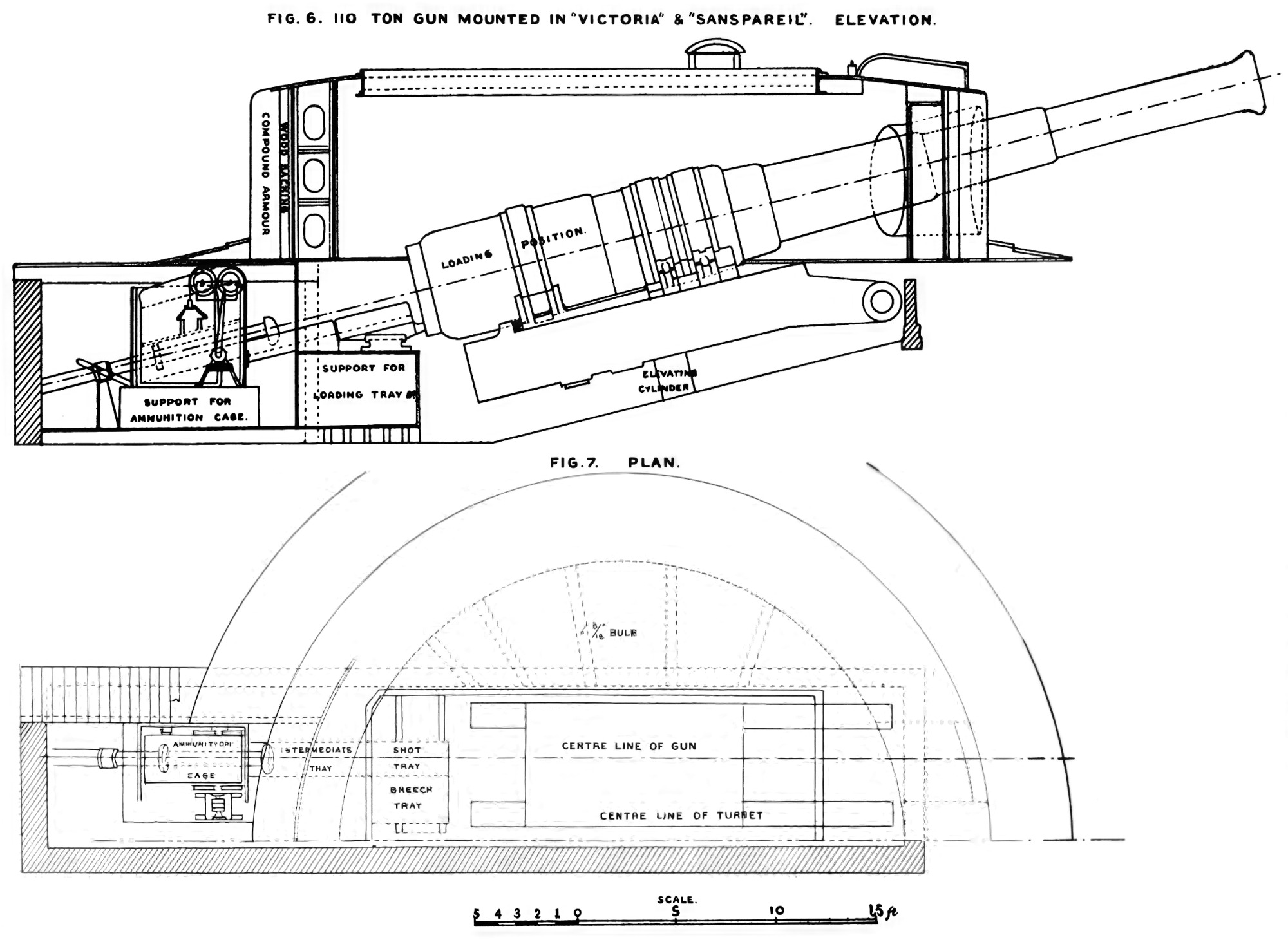 Okręty typu "VICTORIA" były wzorowane na typie "CONQUEROR", ze zmianami predysponującymi nowo powstałe okręty do pierwszej klasy okrętów pancernych. Uzbrojenie główne identyczne jak w typie "ADMIRAL (III)" skoncentrowano na dziobie, w dwudziałowej wieży artyleryjskiej. |