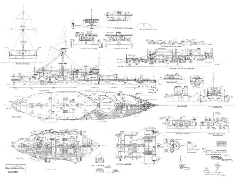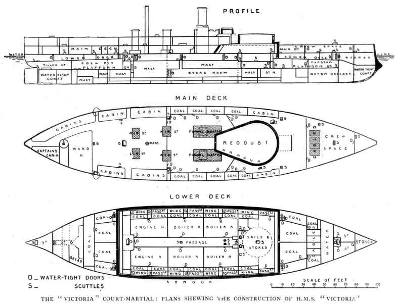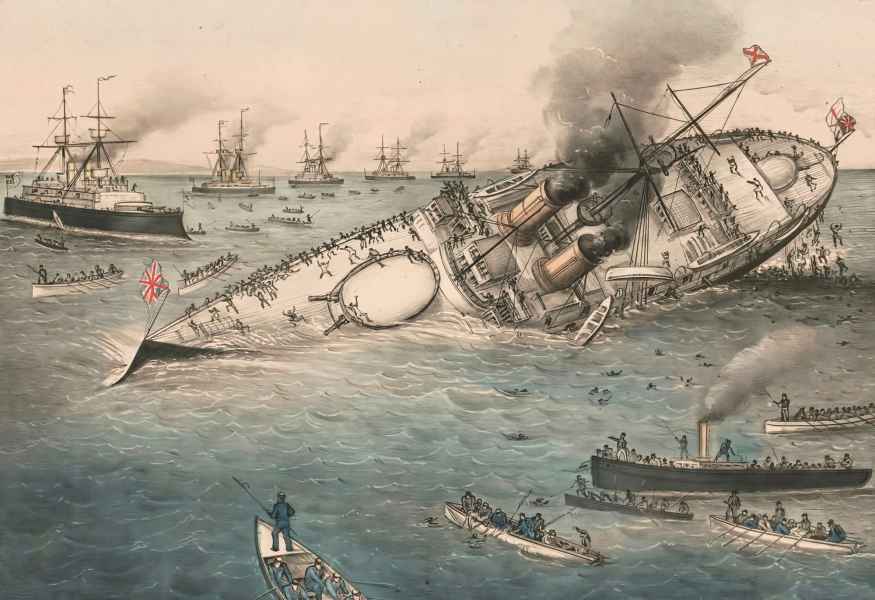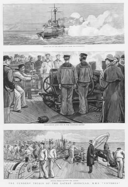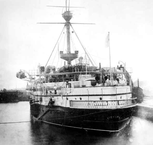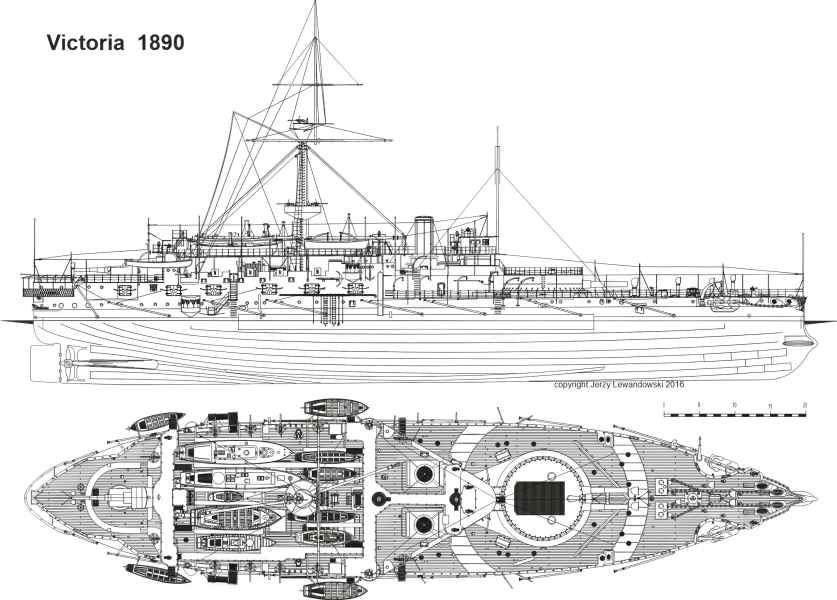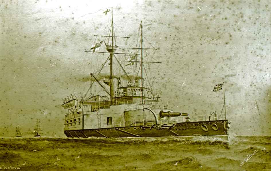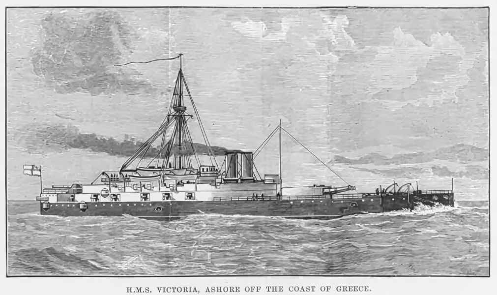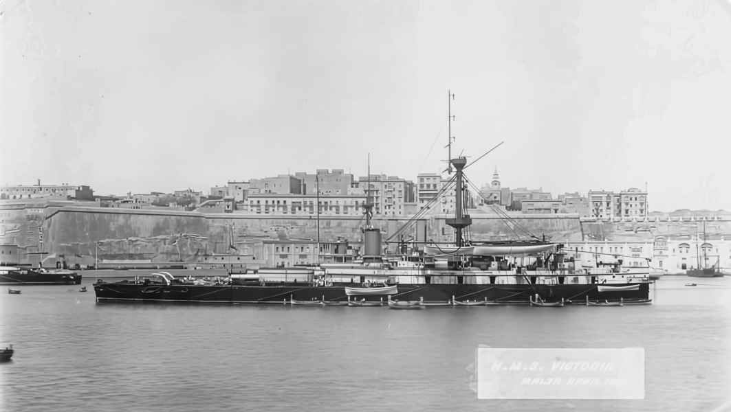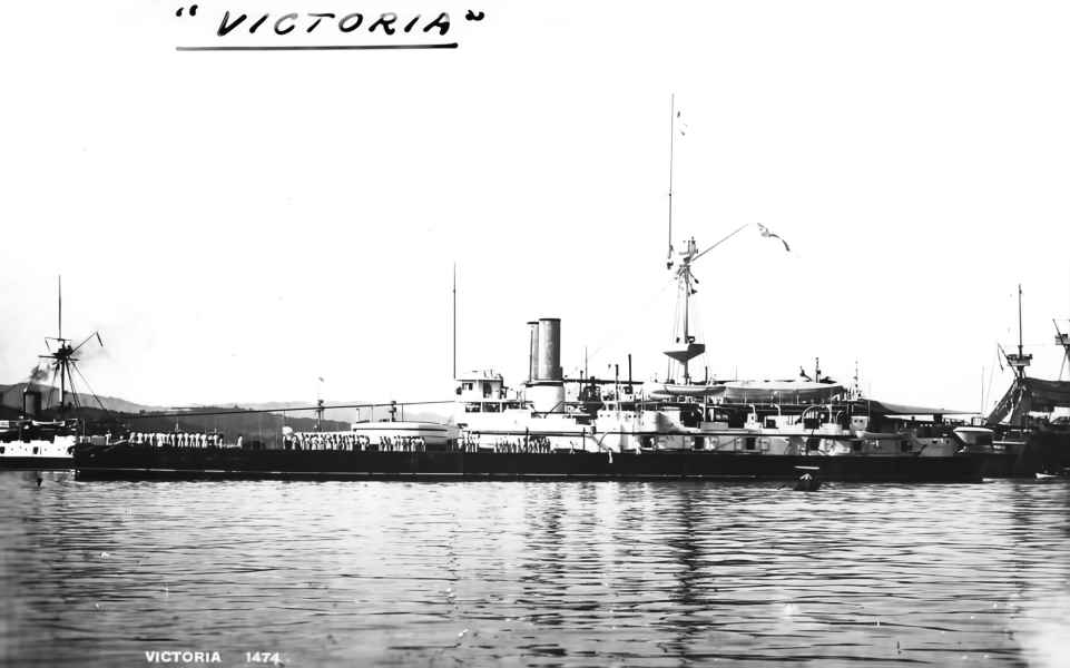 | 19.03.1890 | Po odbyciu prób morskich, 19 marca 1890 roku HMS "VICTORIA" została wcielona w skład Floty Śródziemnomorskiej, wówczas najsilniejszego związku operacyjnego Royal Navy, zastępując HMS "CAMPERDOWN" w roli jednostki flagowej jej dowódcy, admirała Anthony'ego Hoskinsa. |