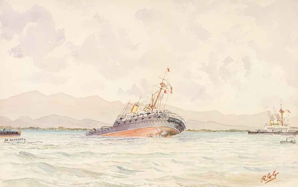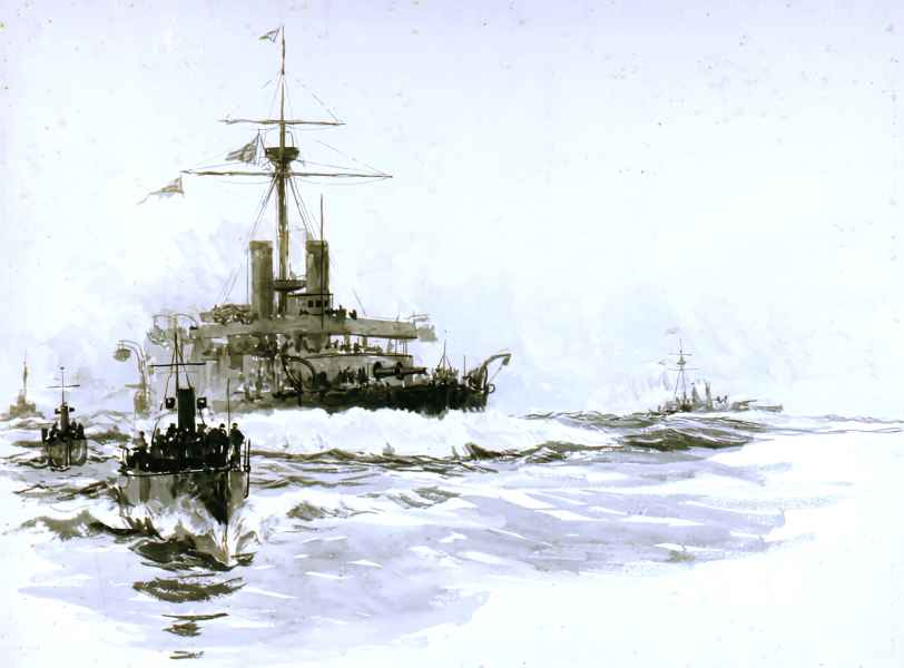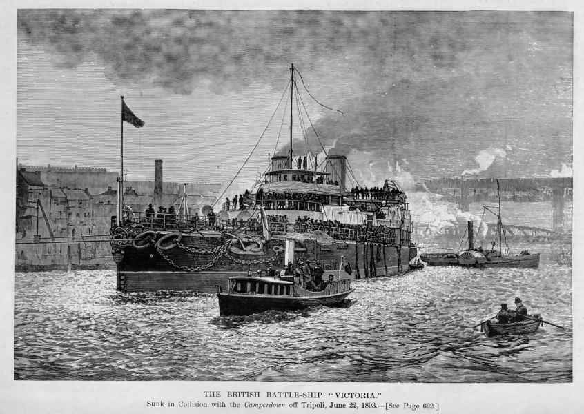 | 27.05.1893 | Flota Śródziemnomorska rozpoczęła kolejne letnie manewry. Wzięły w nich udział dwa dywizjony pancerników: 1., pod dowództwem samego admirała Tryona, i 2., dowodzony przez kontradmirała Alberta Markhama, z HMS "CAMPERDOWN" jako jednostką flagową. Rejonem manewrów były wody na północ od Rodos, następnie flota zawijała kolejno do Akki, Hajfy i 17 czerwca do Bejrutu. Obie eskadry spędziły tam pięć dni, po czym admirał Tryon zdecydował o wyjściu w morze i przepłynięciu do Trypolisu. Dystans ten wynosił około 60 mil morskich. |