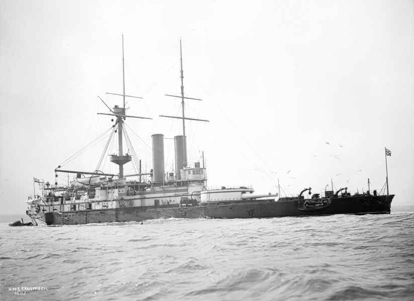 | 07.08.1899 | Tuż po zakończeniu manewrów morskich doszło do niefortunnego incydentu pomiędzy latarniami morskimi Woolf i Eddystone Lighthouse 7 sierpnia. Flota płynęła w czterech liniach, z których jedną kierował "SANS PAREIL". W wyniku pewnego nieszczęśliwego wypadku pancernik zderzył się z "EAST LOTHIAN", jednostką z Glasgow o pojemności 1389 ton angielskich, płynącą z Nantes do Cardiff. Statek handlowy nie został zauważony na pokładzie pancernika, mimo że kapitan i pierwszy oficer East Lothian najwyraźniej "EAST LOTHIAN", podnosząc alarm. "SANS PAREIL" wbił się głęboko w "EAST LOTHIAN" i uszkodził go tak poważnie, że zatonął on w siedem lub osiem minut po kolizji. Żona i syn kapitana oraz cała załoga, z wyjątkiem trzech marynarzy, zdołali wspiąć się na pokład okrętu wojennego. Dwóch z zaginionych mężczyzn zostało wyłowionych przez łodzie, ale trzeci, marynarz nazwiskiem William Collins z St. David's, utonął. |