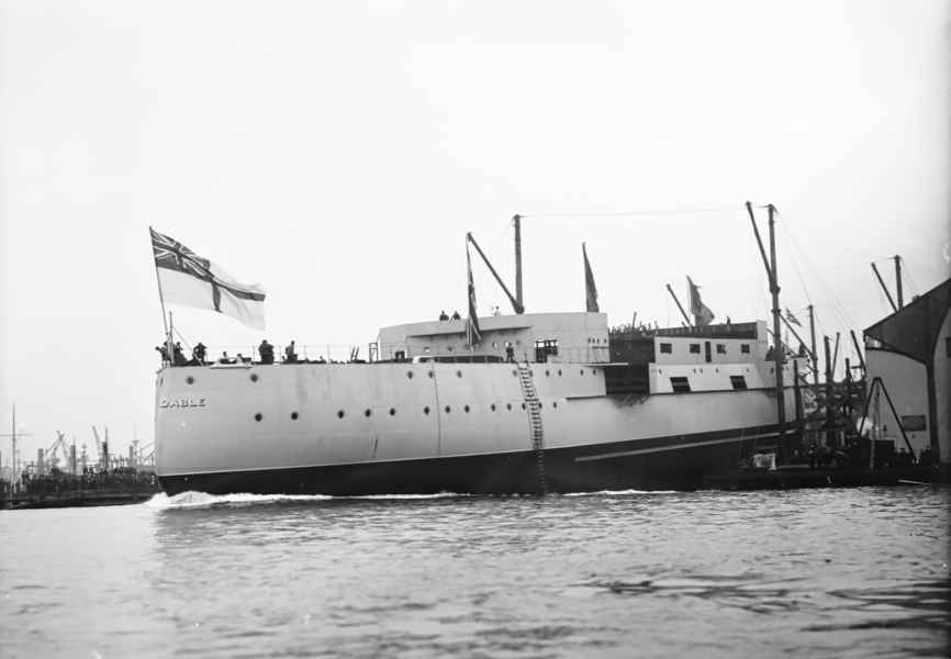 | 11.03.1899 | Wodowanie okrętu. Stan okrętu był mocno niekompletny w momencie wodowania, gdyż potrzebne było zwolnienie miejsca na pochylni dla nowo budowanego pancernika HMS "BULWARK". |