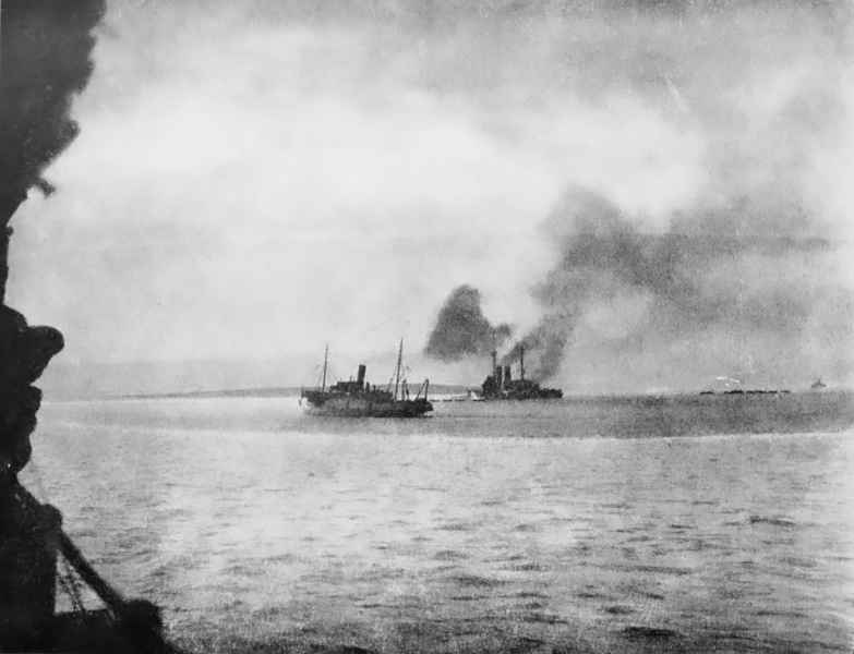 | 25.02.1915 | Podczas wspierania lądowania oddziałów piechoty w pobliżu Fort Orkanieh został trafiony dwoma pociskami 240 mm (9,4 in.). |