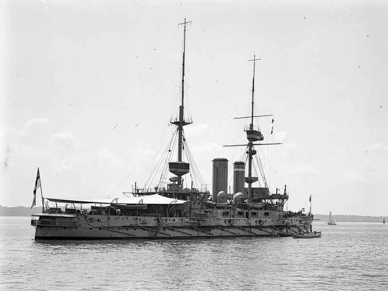 | 15.12.1898 | Wodowanie okrętu w mocno niekompletnym stanie z powodu potrzeby zwolnienia miejsca dla budowy pancernika HMS "VENERABLE". |