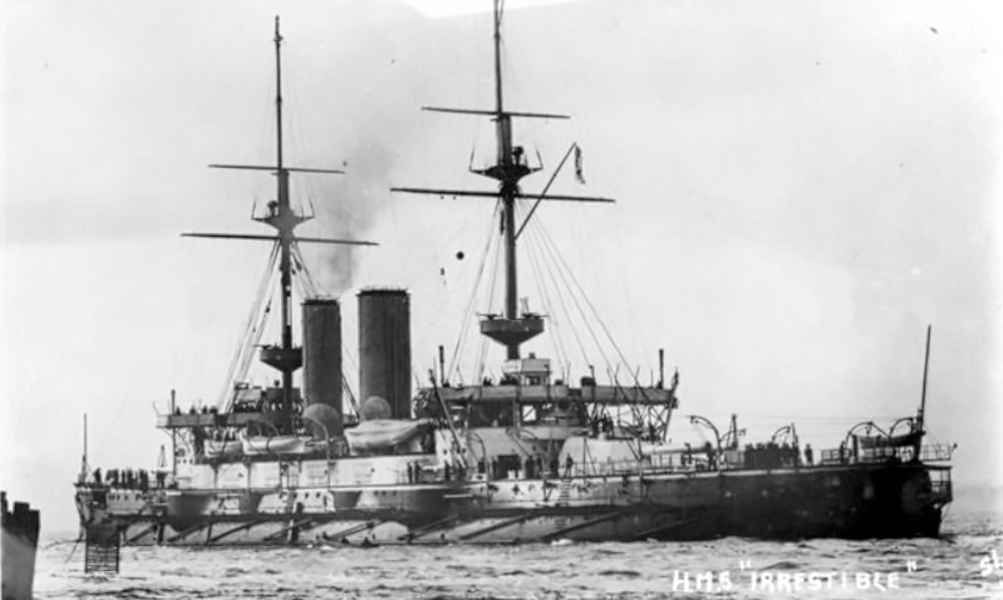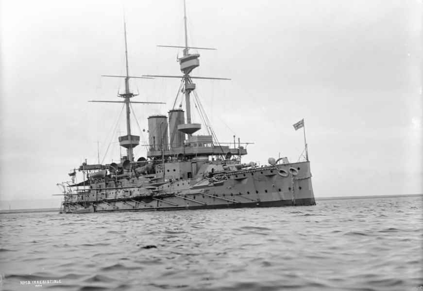 | 01.02.1914 | HMS "IRRESISTIBLE" został przekierowany w rejon Dardaneli gdzie miał wziąć udział w Operacji Dardanelskiej jako okręt flagowy British Dardanelles Squadron (do marca 1915 r.). |