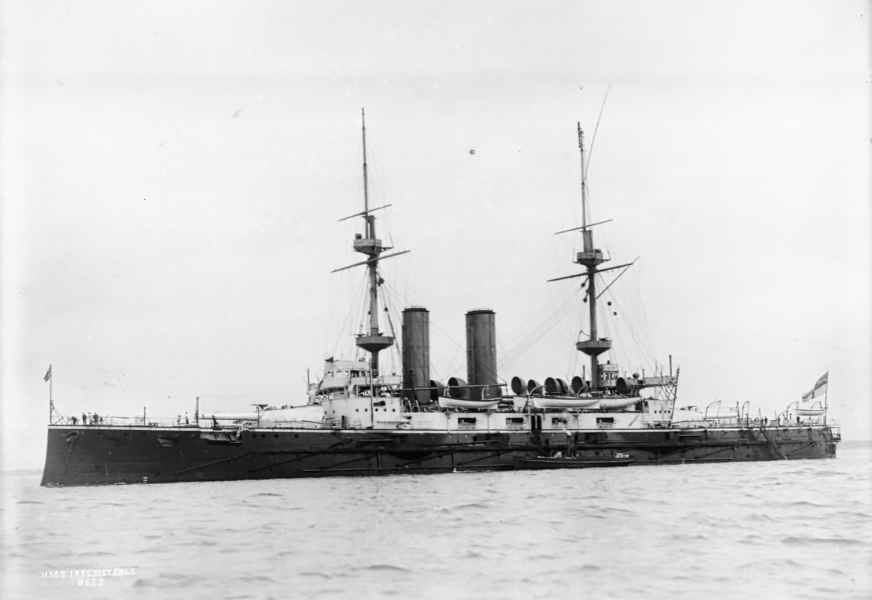 | 04.02.1902 | Okręt został wcielony do służby w Chatham Dockyard z przeznaczeniem na Morze Śródziemne, gdzie miał zmienić pancernik wieżowy HMS "DEVASTATION" w roli okrętu strażniczego w Gibraltarze. |