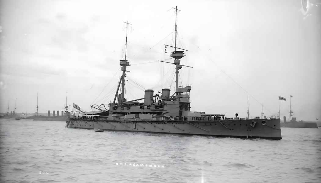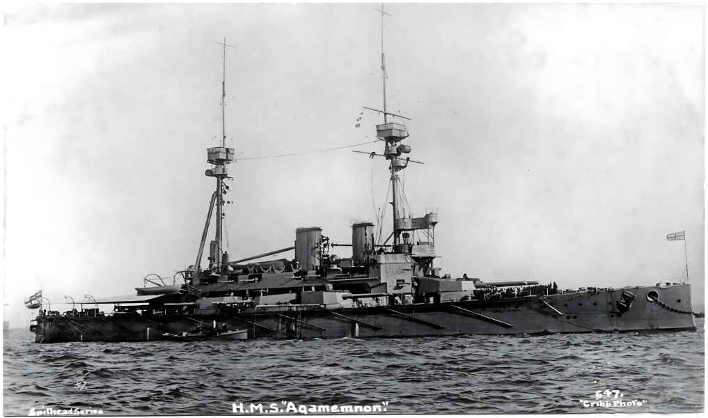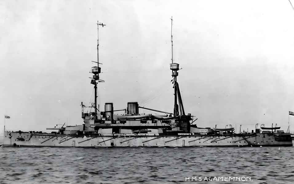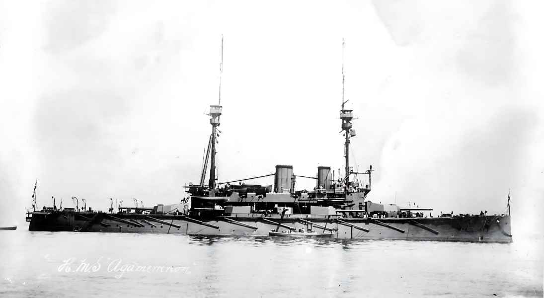 | 08.1917 | Eastern Mediterranean Squadron został przeorganizowany w Aegean Squadron. Okręty należące do dywizjonu zostały rozproszone po całym obszarze, osłaniając należące do Sprzymierzonych wyspy, wspierając brytyjskich żołnierzy w Salonikach a także zapobiegając przedarciu się przez Dardanele krążownika liniowego "GOEBEN" i towarzyszących mu okrętów. HMS "AGAMEMNON" spędził resztę wojny przemieszczając się głównie pomiędzy Salonikami i Mudros, częściej odwiedzając ten drugi. W trakcie tej służby okręt ostrzelał w Salonikach niemiecki sterowiec "LZ85", trafiając go jednym pociskiem i zmuszając do lądowania. 20 stycznia 1918 r. okręt nie zdążył przechwycić niemieckich okrętów przed powrotem na Morze Czarne. |