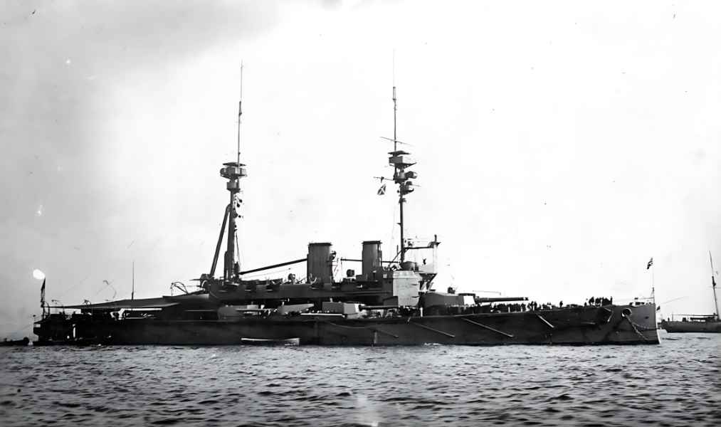 | 06.1908 | Ukończenie budowy okrętu. Zostało znacznie opóźnione w związku z problemami z pracownikami oraz z działami 305 mm, które zostały przekierowane do wykańczanego w tym samym czasie pancernika HMS "DREADNOUGHT". |