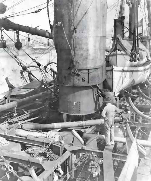 | 19.03.1921 | Pierwsze testy na okręcie zostały przeprowadzone jeszcze zanim ukończono przebudowę w Chatham. Najpierw sprawdzono działanie trującego gazu bojowego na pancernik. |
