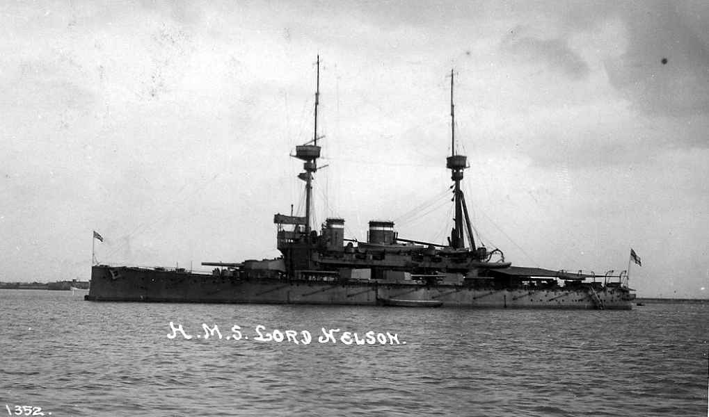 | 12.05.1915 | HMS "LORD NELSON" zastąpił brytyjskiego drednota HMS "QUEEN ELIZABETH" w pełnieniu funkcji okrętu flagowego British Dardanelles Squadron. Swoją flagę na okręcie podniósł Vice-Admiral Rosslyn Erskine-Wemyss. |