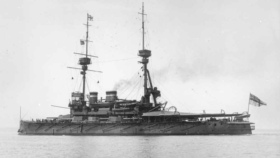| 08.1914 | W momencie wybuchu I wojny światowej pancernik został przydzielony do 5. Battle Squadron w składzie Channel Fleet, z miejscem bazowania w Portland. Jednym z pierwszych zadań bojowych było zabezpieczenie (wraz z innymi okrętami) statków z Brytyjskimi Siłami Ekspedycyjnymi (British Expeditionary Force) w drodze przez Kanał na kontynent. |