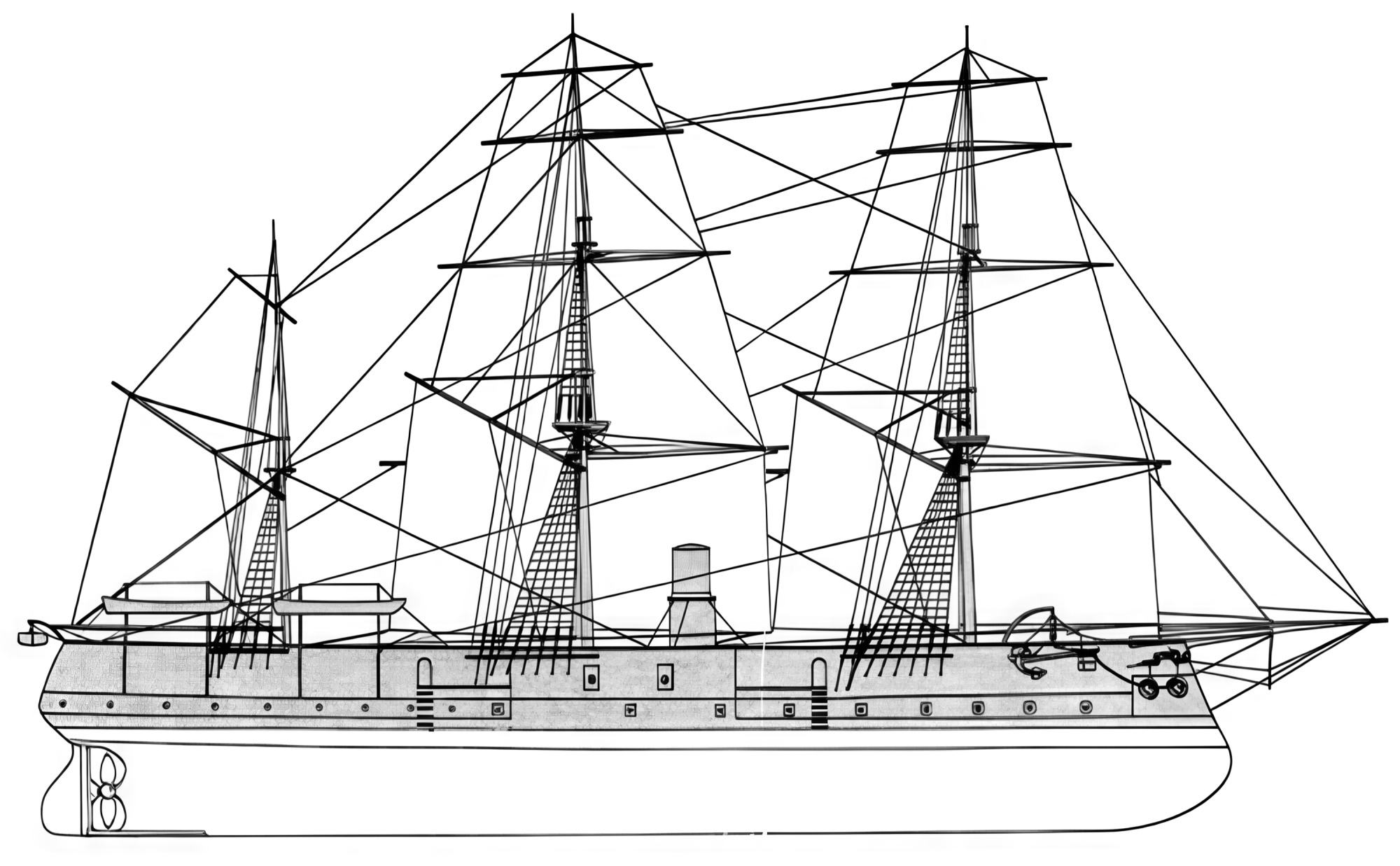 Kraj: Wielka Brytania klasa: slup pancerny (okręt pancerny z baterią centralną, drewnianokadłubowy slup pancerny)