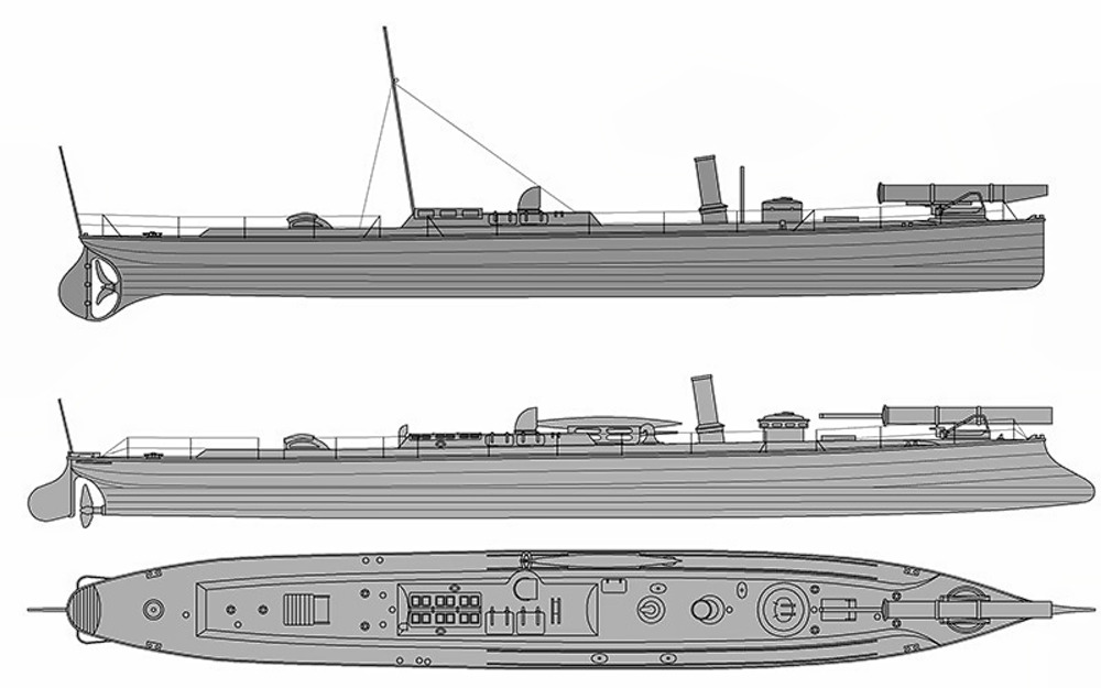 | 1879 | Położenie stępki okrętu w stoczni John I. Thornycroft & Company, Church Wharf, Chiswick pod numerem stoczniowym 81. |