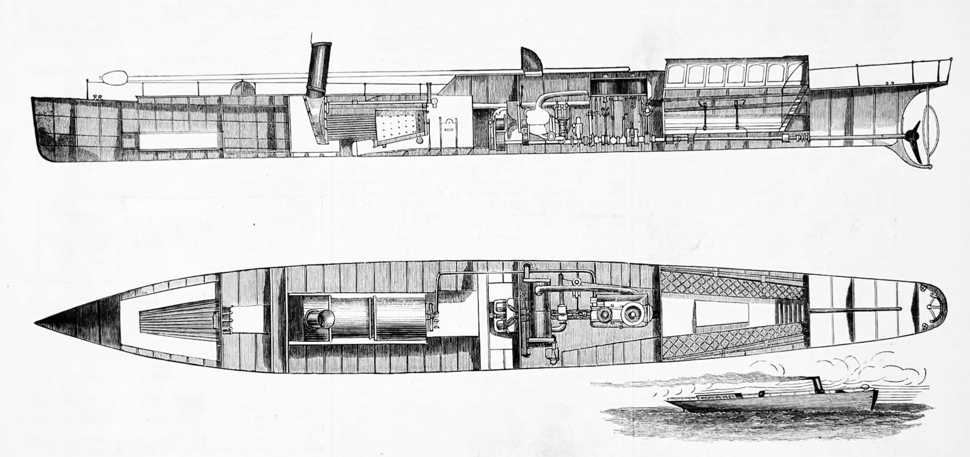 Uzbrojenie tych okrętów składało się początkowo wyłącznie z miny wytykowej. Broń ta miała postać długiego drewnianego pręta, zamocowanego na dziobie (z możliwością niewielkiego wychylania na obie burty) i wyposażonego w materiał wybuchowy na jego końcu. Aby zaatakować wrogi statek i jednocześnie uniknąć wykrycia, te jednostki musiałyby podejść do statku ukradkiem z małą prędkością, najlepiej późnym wieczorem lub w ciemnościach nocy. Pojedynczy komin na każdej z tych jednostek miał możliwość obniżenia na czas takiej akcji, co ułatwiało skryte podejście. Z 62-stopowego drzewca, około 45 stóp wystawało przed dziobem, a pozostałe 17 stóp na pokładzie zaprojektowano tak, aby broń była stabilna. Rozkazy wystrzelenia materiału wybuchowego w stronę intruza i odejścia wstecz miały być wydawane jednocześnie, aby uniknąć uszkodzenia torpedowca.
